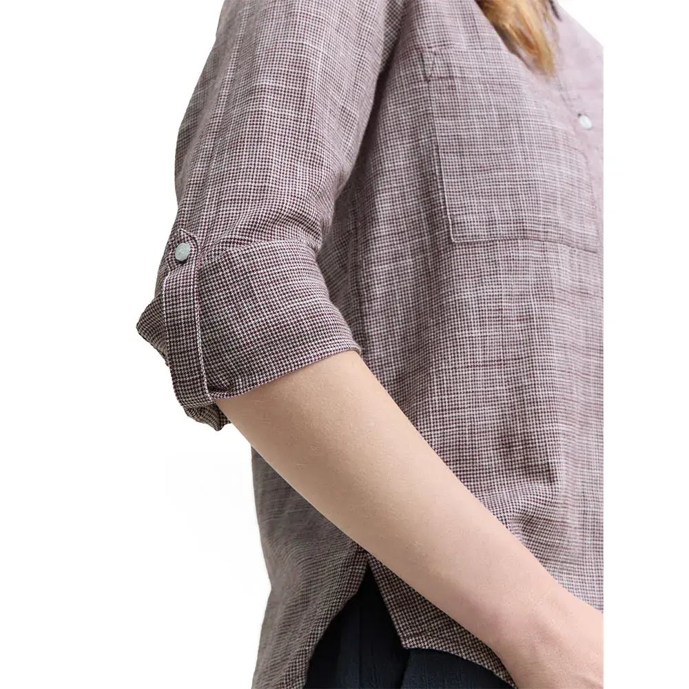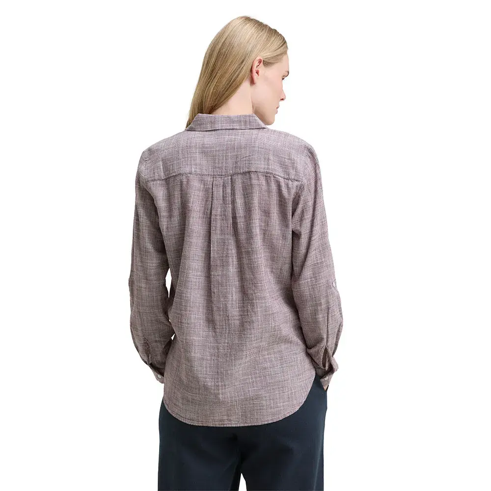 Блузка-рубашка с двумя накладными нагрудными карманами и функцией подворота на рукавах для регулировки длины рукавов.