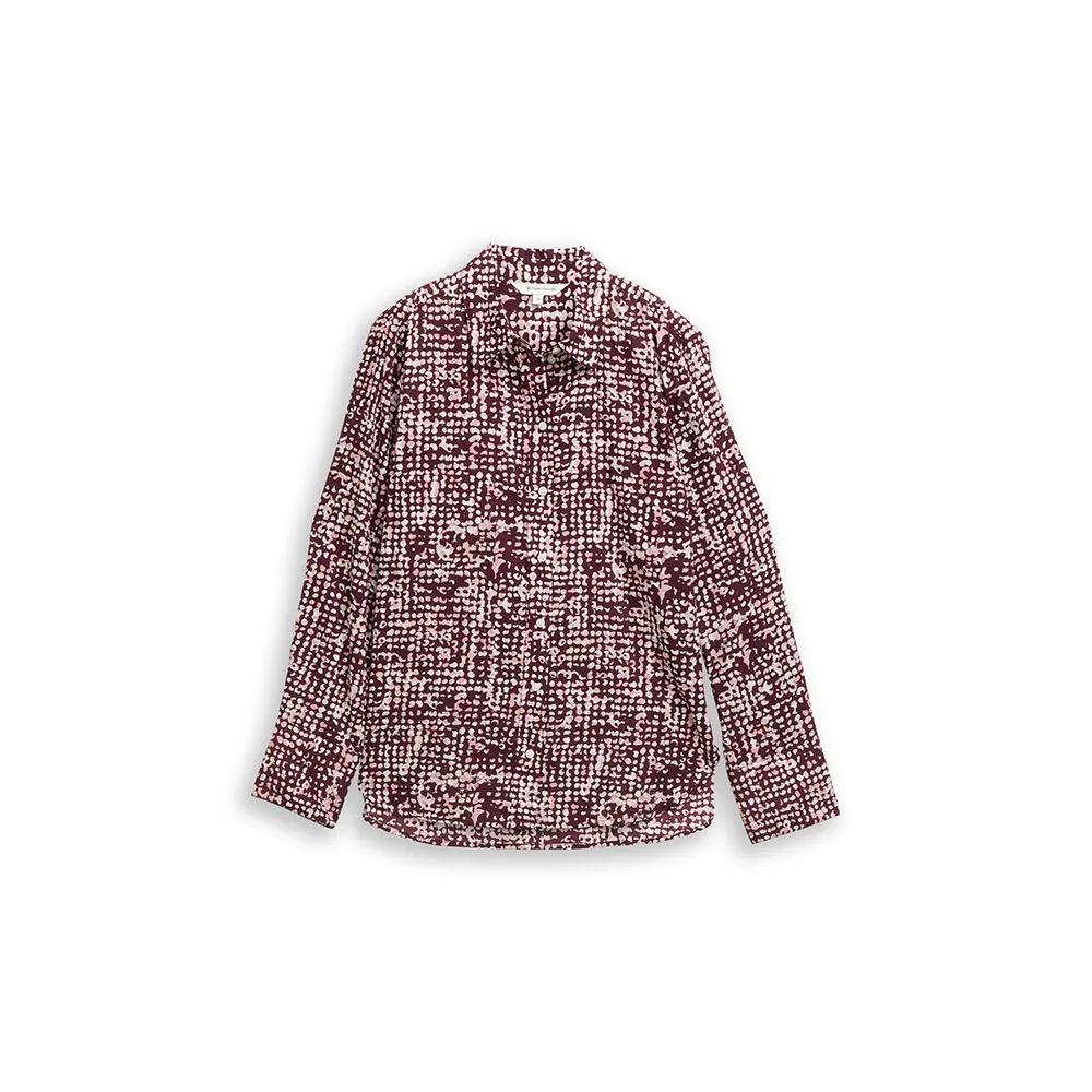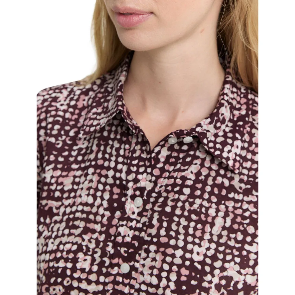 Блузка-рубашка с рисунком, разрезами по бокам и плиссированной деталью на спине.