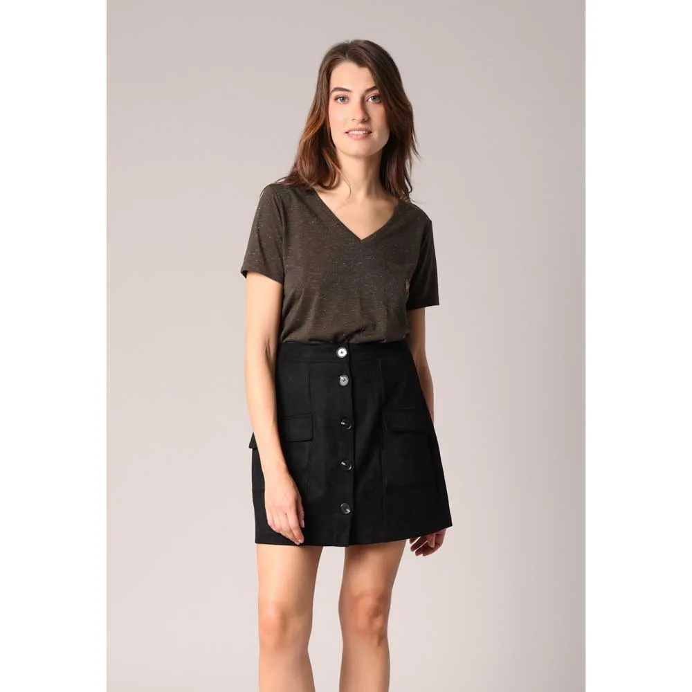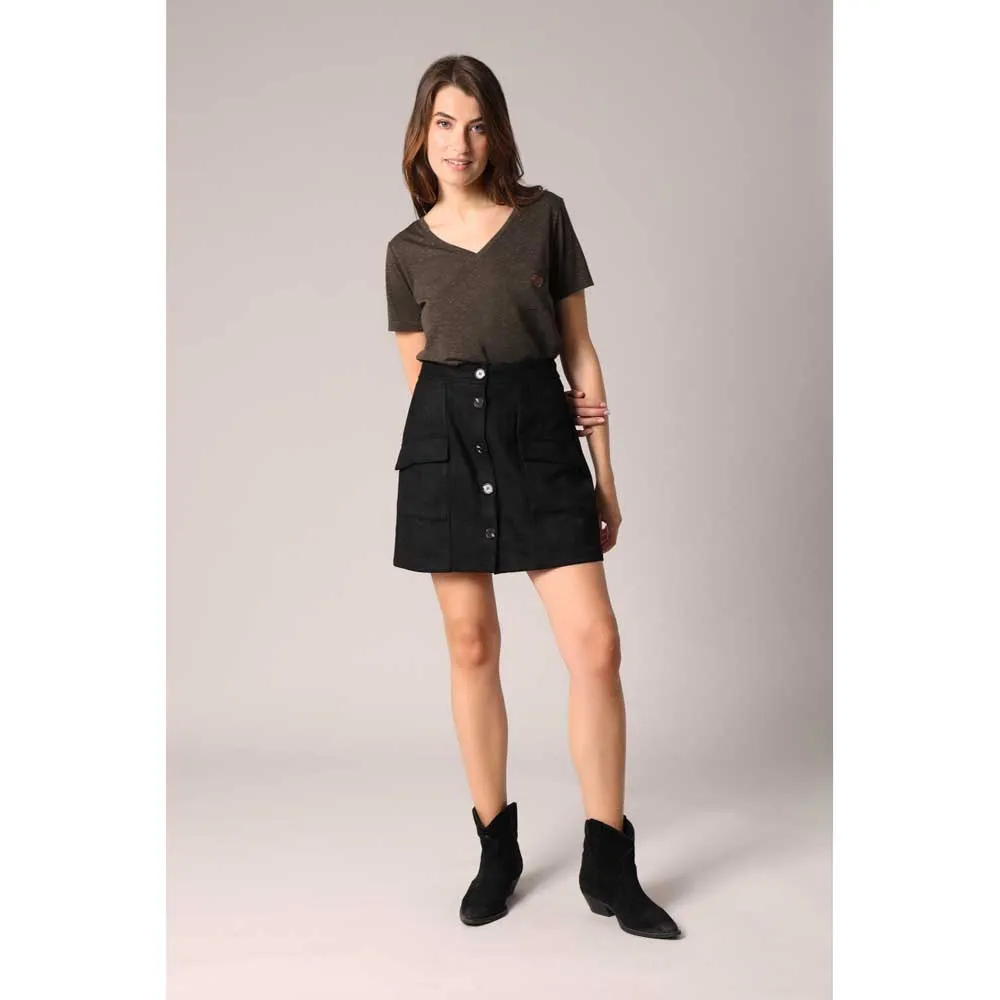 Вдохновленная винтажными гардеробами и измененная на современный лад, эта короткая замшевая юбка воплощает идеальный баланс между мягкостью и характером.