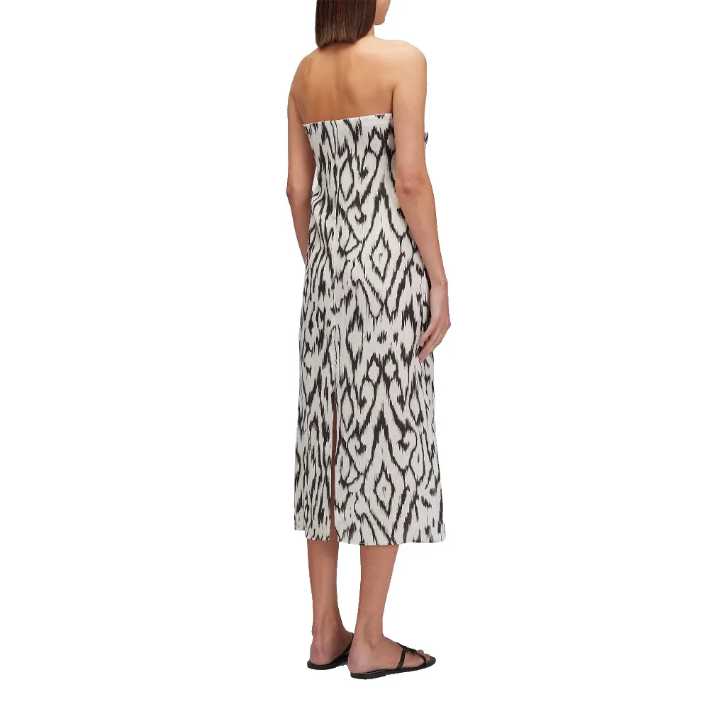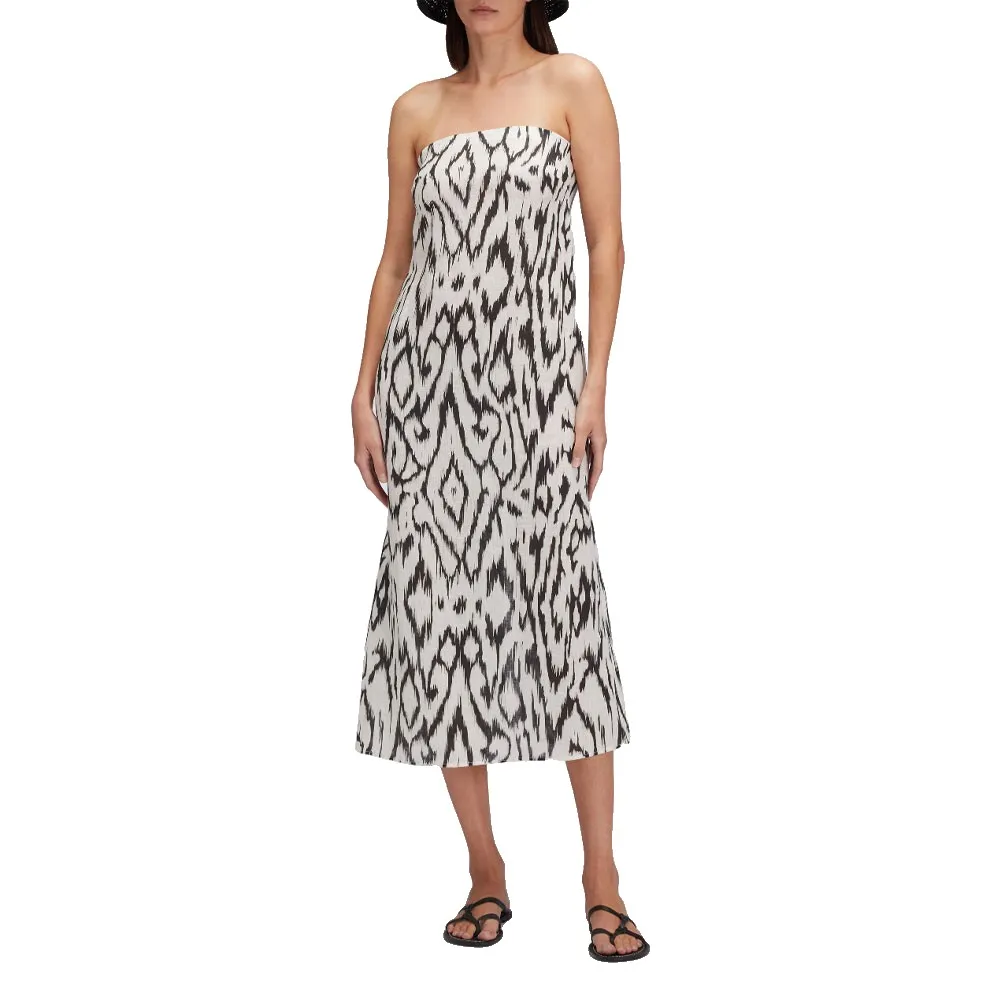 От залитого солнцем утра до ласковых вечеров. Его изящный дизайн легко переходит от шикарного пляжного наряда поверх вашего любимого бикини к элегантному ансамблю для коктейлей на закате или ужина на берегу моря. Крой без рукавов не только подчеркивает воздушность платья, но и красиво подчеркивает плечи, а длинная струящаяся юбка колышется с пленительной грацией. Произведите незабываемое впечатление с очаровательным абстрактным животным принтом, современной и художественной интерпретацией классического рисунка, который добавляет нотку дикой изысканности и гарантирует, что вы будете выделяться с утонченной уверенностью.
