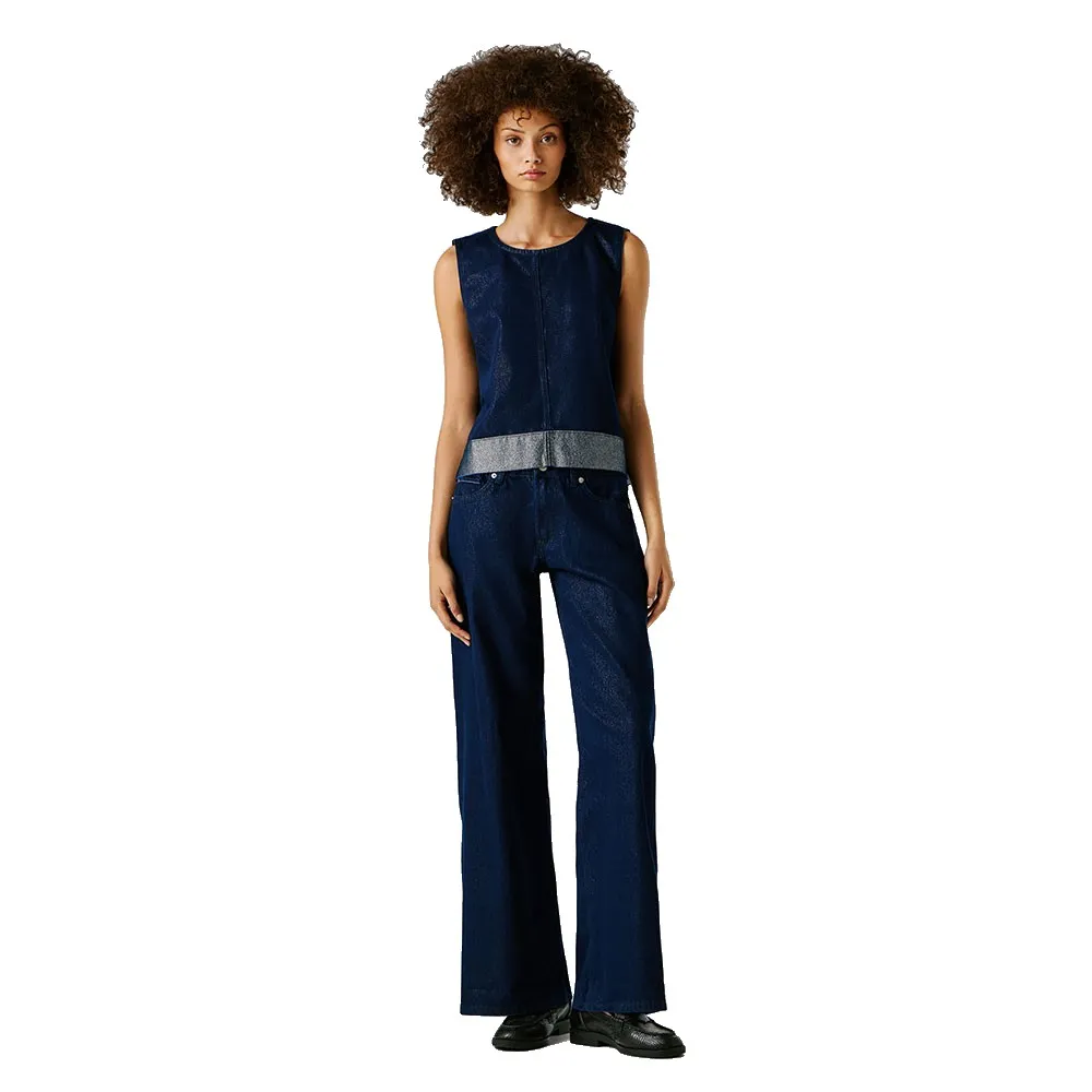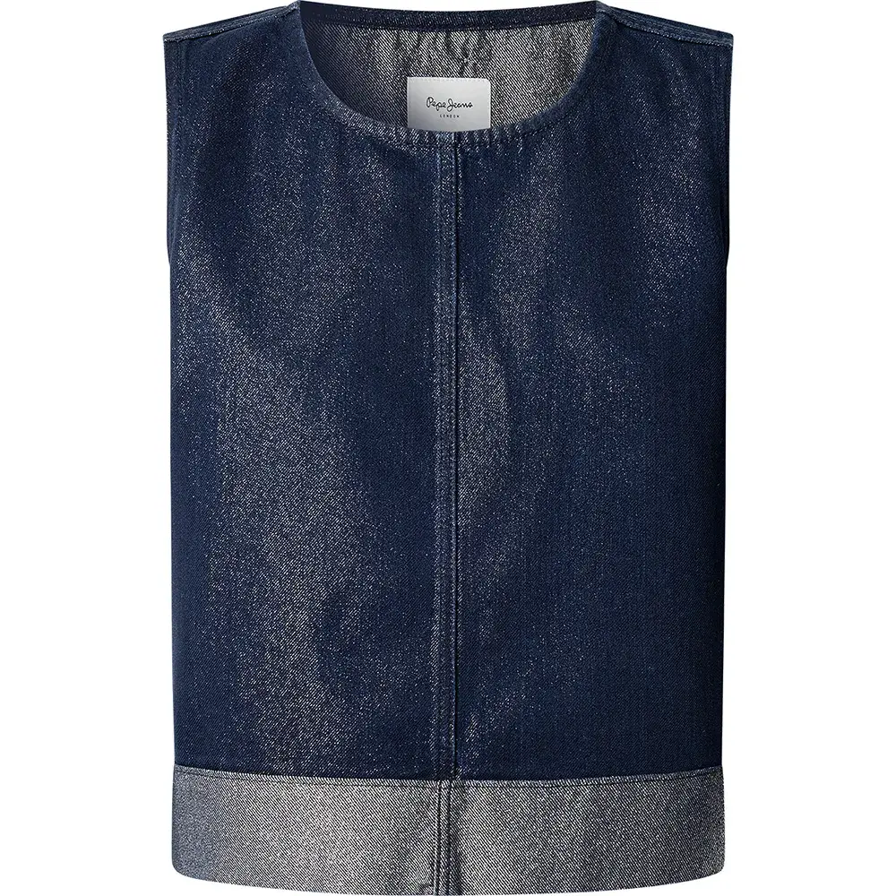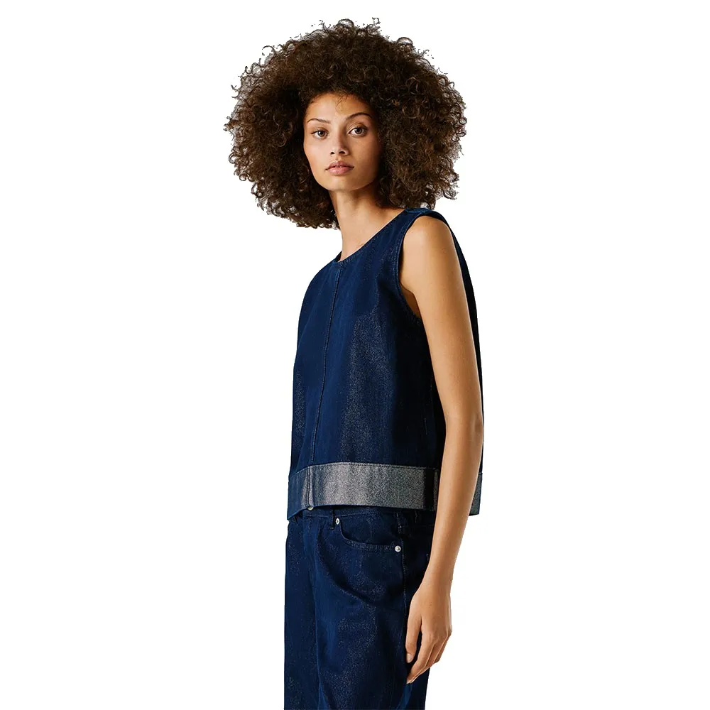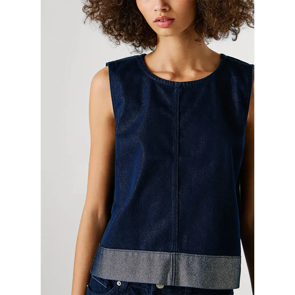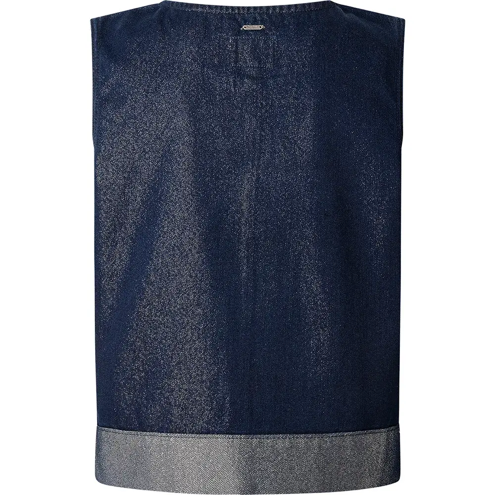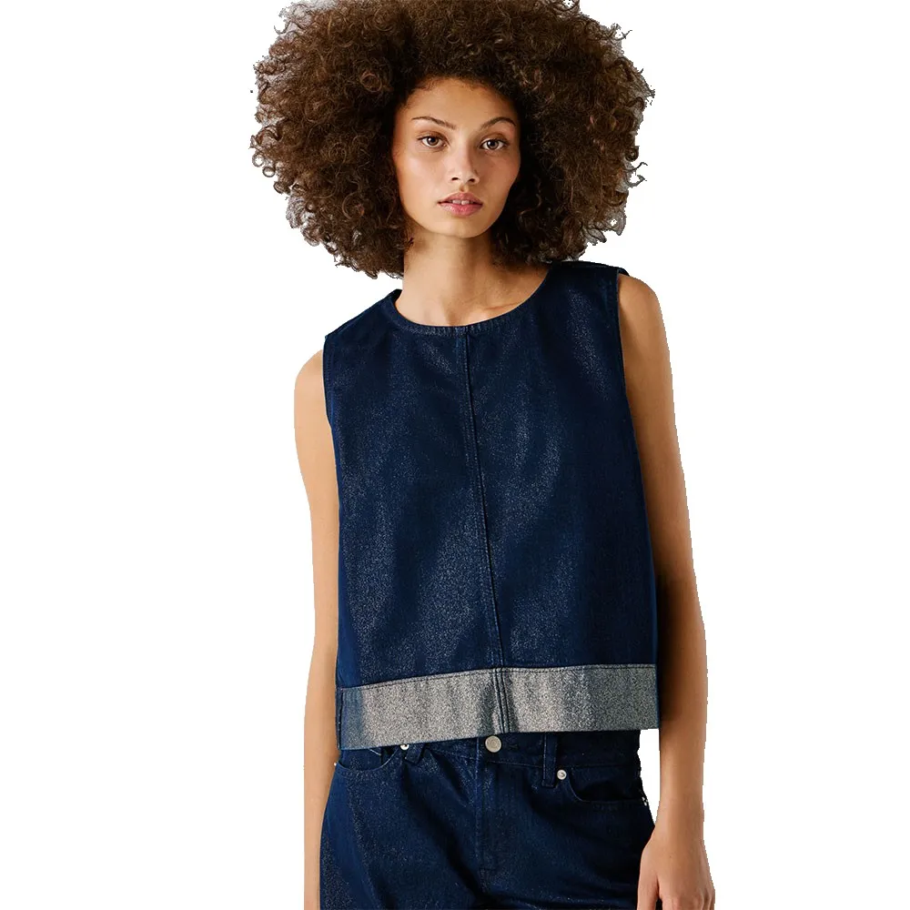 Джинсовый топ без рукавов из темно-синего денима с люрексом.