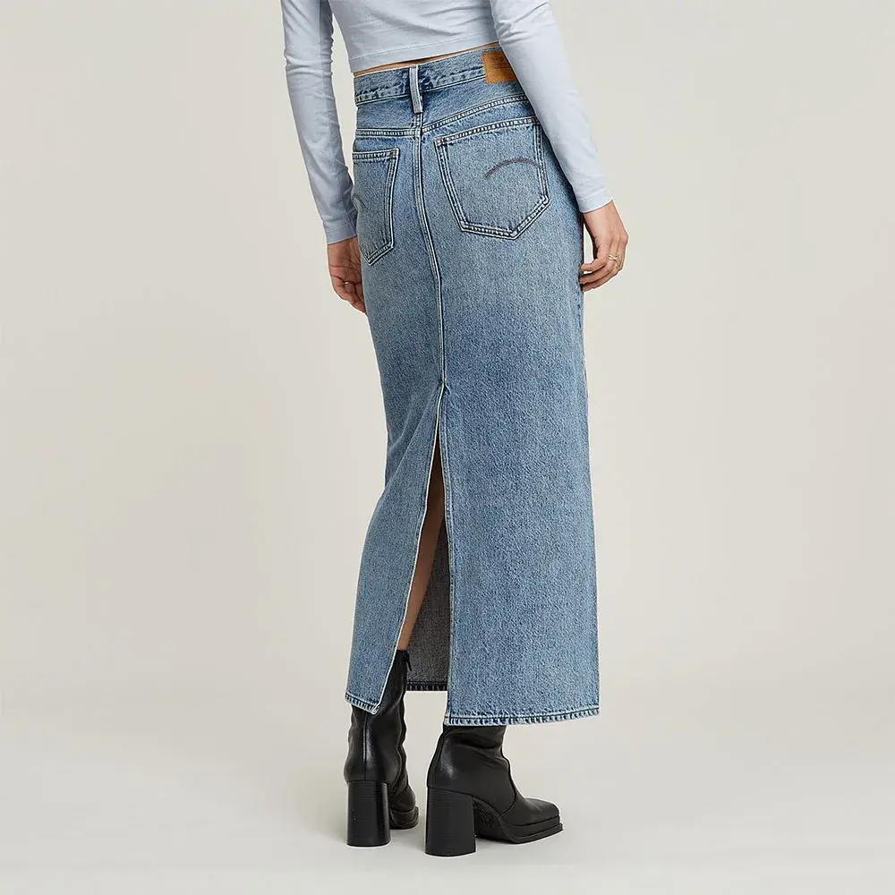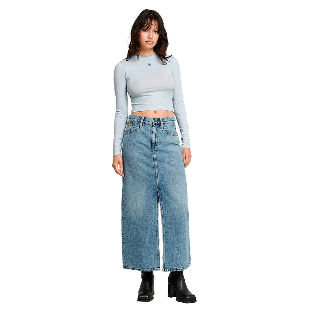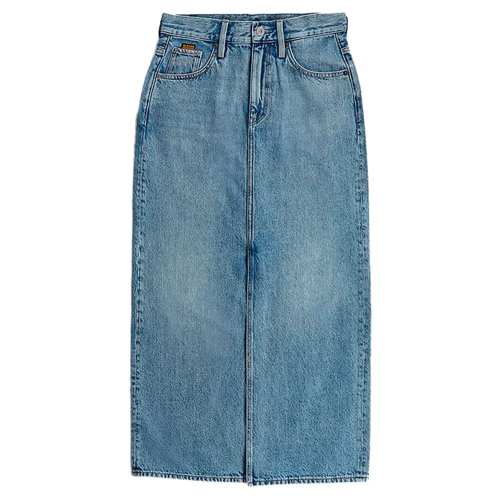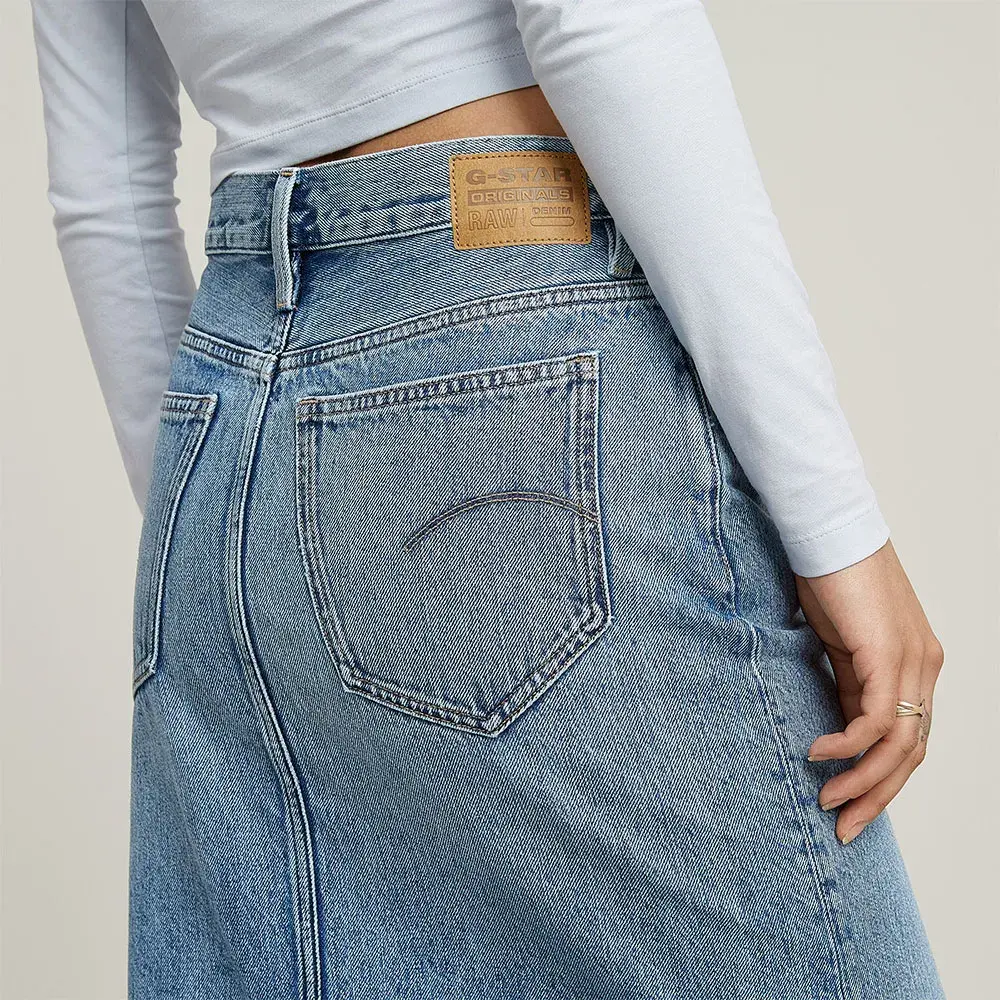 Эта джинсовая юбка оснащена врезными карманами с кармашком для монет.