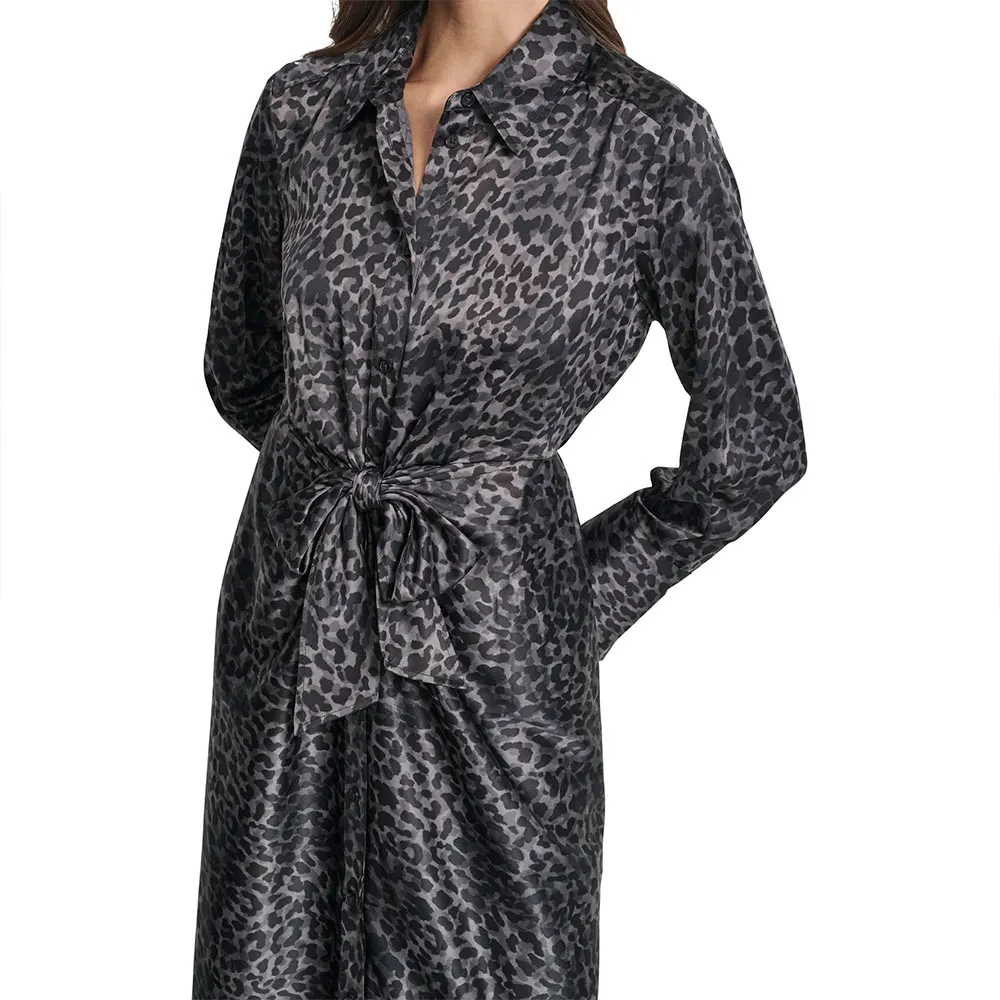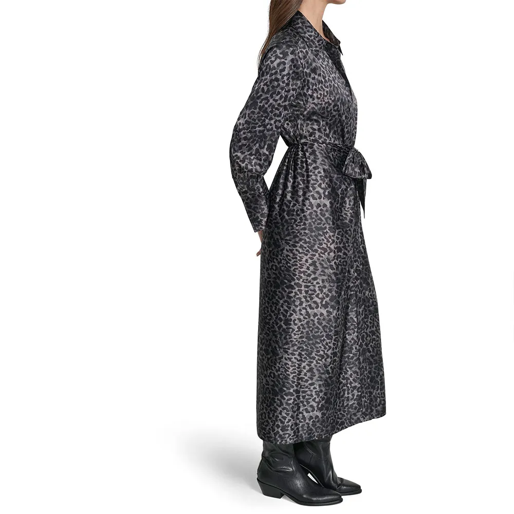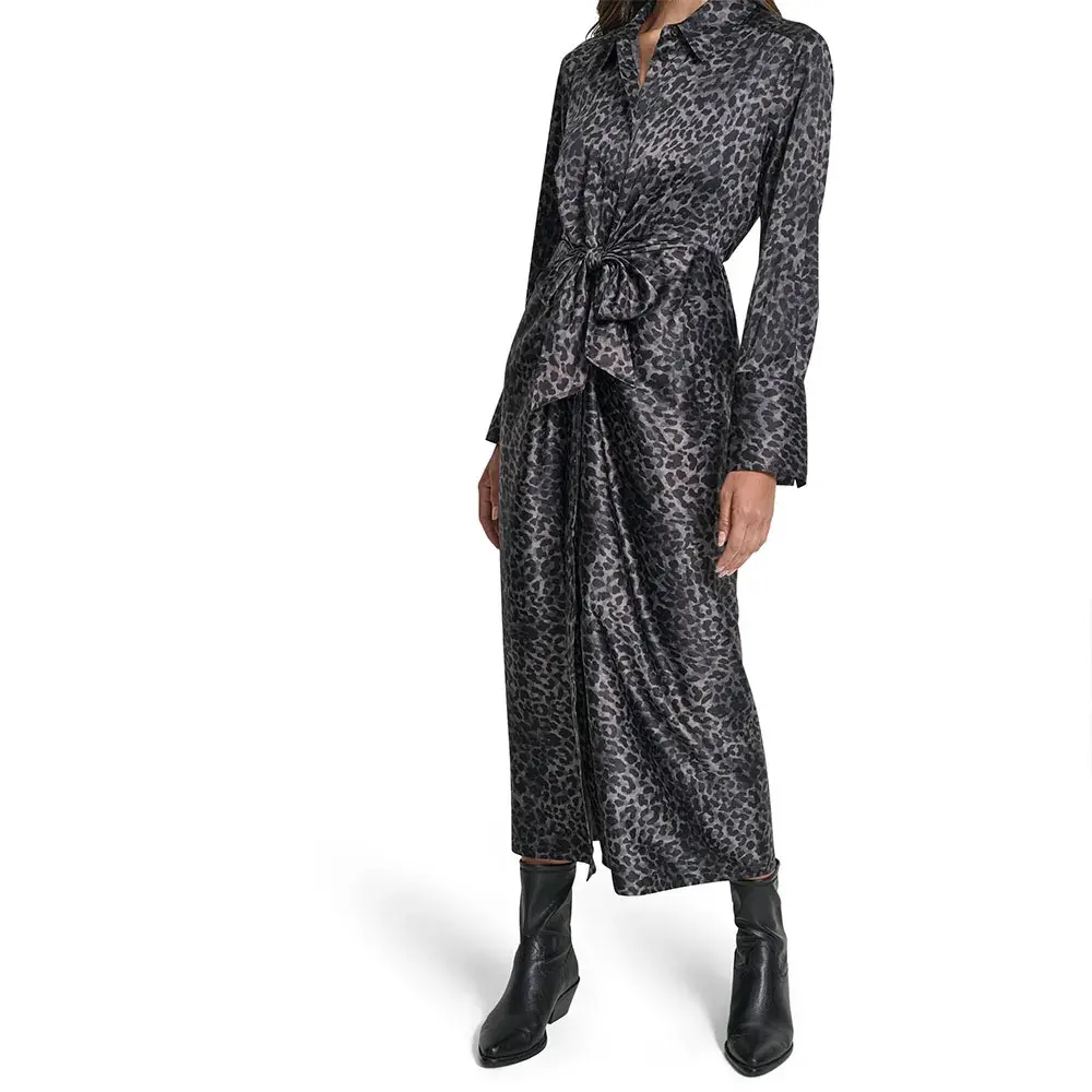 Длинное платье из атласа с принтом DKNY: непринужденная изысканность, современный стиль