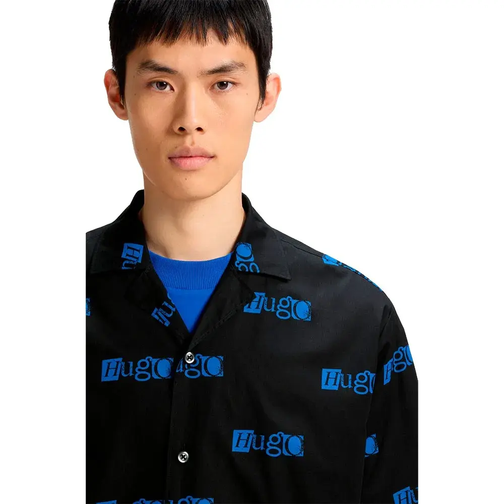 Дополните повседневный образ этой рубашкой HUGO Menswear. Непринужденный крой из мягкого хлопка. По всей поверхности нанесены эффектные логотипы.