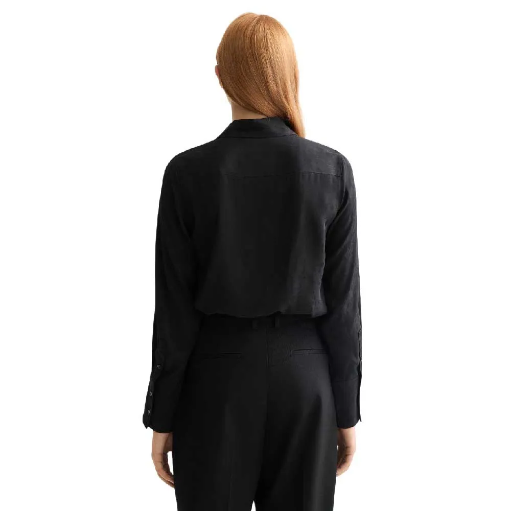 Эта блузка является универсальным предметом гардероба, который легко переходит из офиса в вечерний выход. Заправьте ее в сшитую на заказ юбку-карандаш или брюки с завышенной талией, чтобы создать эффектный деловой ансамбль в стиле кэжуал. Для создания непринужденного, но изысканного образа сочетайте его с вашими любимыми джинсовыми тканями или надевайте незастегнутым поверх облегающих брюк. Его легкий и дышащий состав гарантирует вам комфорт, а струящаяся драпировка придает изящество каждому движению. Это основополагающее изделие, которое обещает стать любимой и часто носимой вещью в вашей коллекции в ближайшие сезоны.