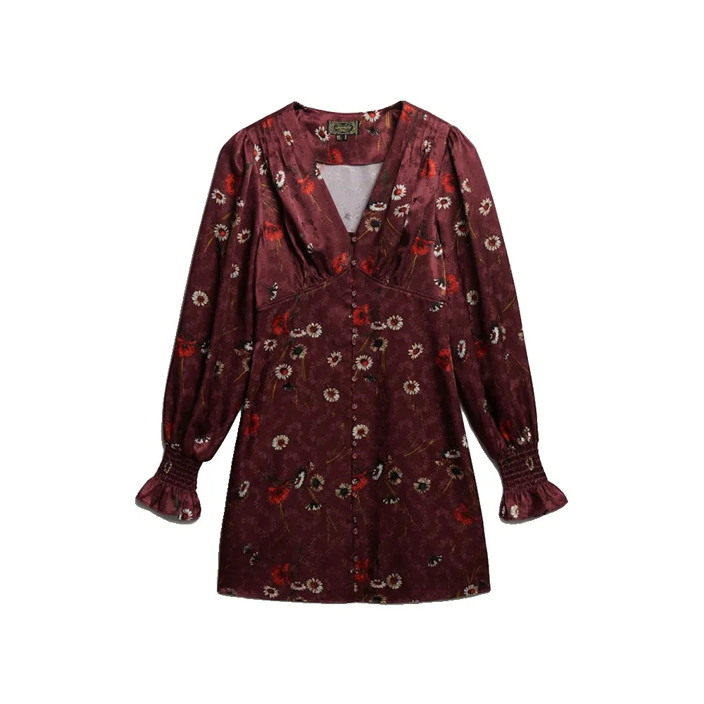 Жаккардовое мини-платье с длинным рукавом - потрясающий вариант для пополнения вашего гардероба. Сшитое из роскошной жаккардовой ткани с элегантными деталями, от плиссированного выреза до замысловатой строчки, это идеальное платье для придания утонченного шика вашему образу.