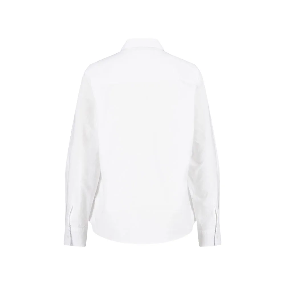 Дизайн выделяется продуманными деталями. Классический воротник рубашки придает нотку изысканности, идеально обрамляя вырез и делая ее подходящей как для профессиональной, так и для повседневной носки. Планка на пуговицах во всю длину обеспечивает надежную классическую застежку, а дизайн длинных рукавов завершается аккуратными манжетами на пуговицах, которые можно опустить для придания остроты образу или закатать для более непринужденного ощущения. Едва заметным, но отличительным признаком подлинности является фирменный логотип FYNCH HATTON acacia tree, изящно вышитый на груди, символизирующий приверженность бренда качеству и его дух авантюризма. Слегка изогнутый подол является универсальной деталью, которая одинаково элегантно смотрится как заправленная в брюки с высокой талией или юбку, так и надетая свободно поверх облегающих джинсов для создания шикарного повседневного ансамбля.