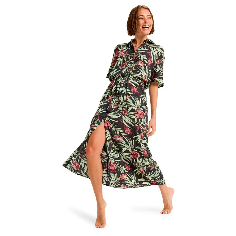 Платье Roxy Island Escape Printed short sleeve midi, черный