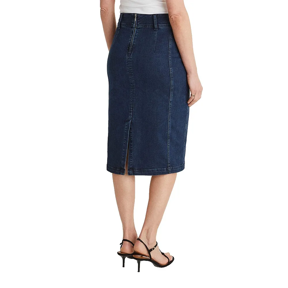 Эта юбка миди с завышенной талией приталена по всей длине и имеет разрез сзади.