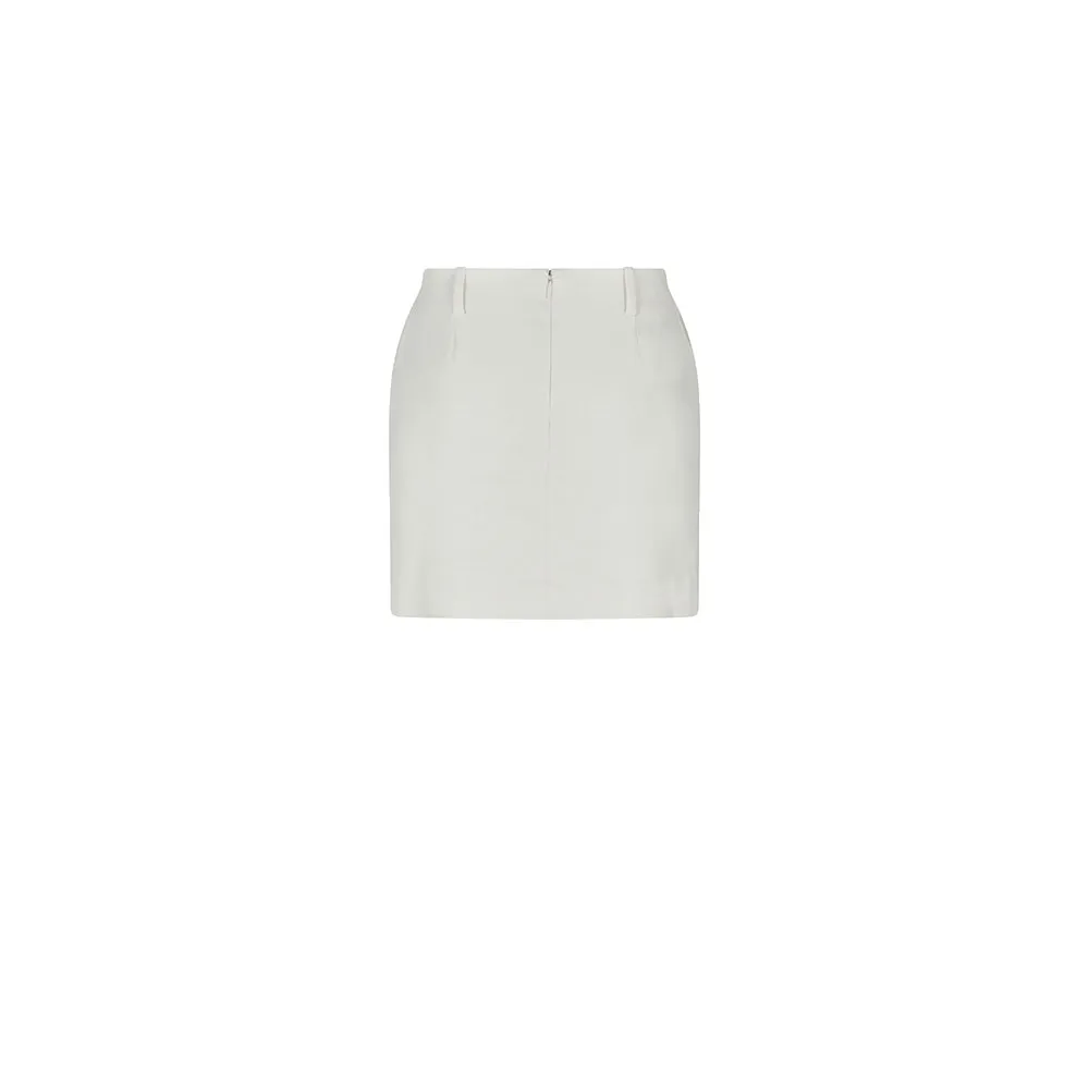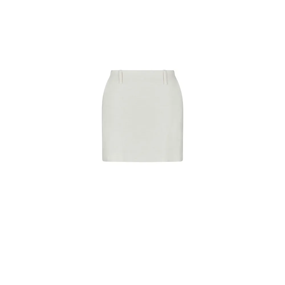 Мини-юбка с завышенной талией и шлевкой для ремня, с левой стороны вышит логотип, передние карманы с диагональным отверстием, сзади на молнии.