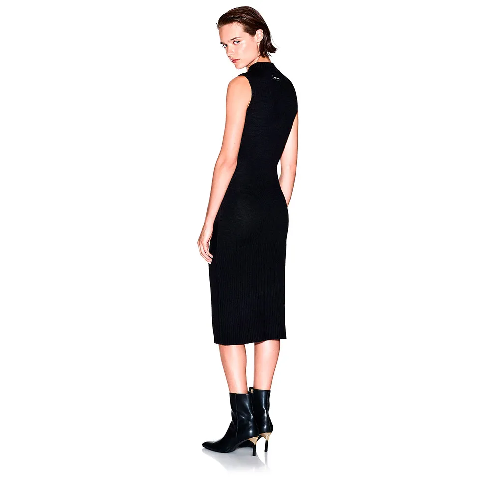 Облегающее платье без рукавов с черепашьим вырезом и длиной миди.