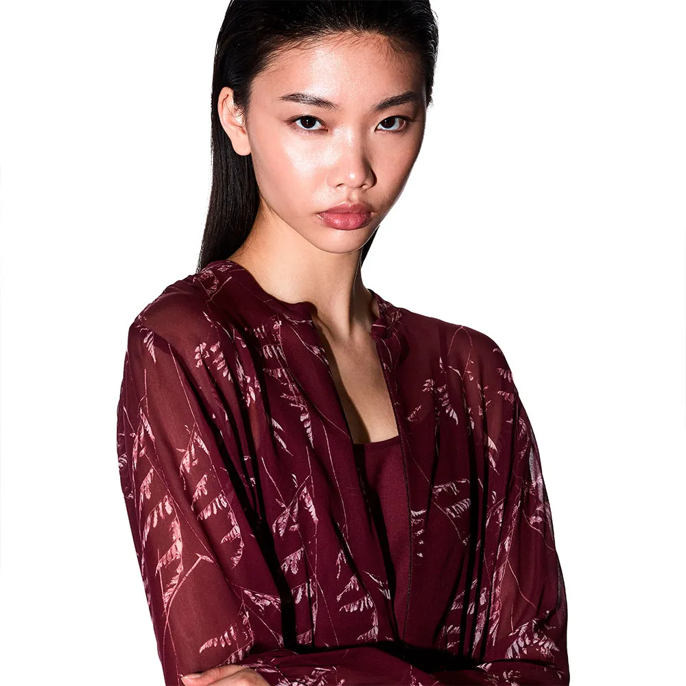 Облегающее платье-клеш с деталями-сорочками и длинными рукавами-баллонами.