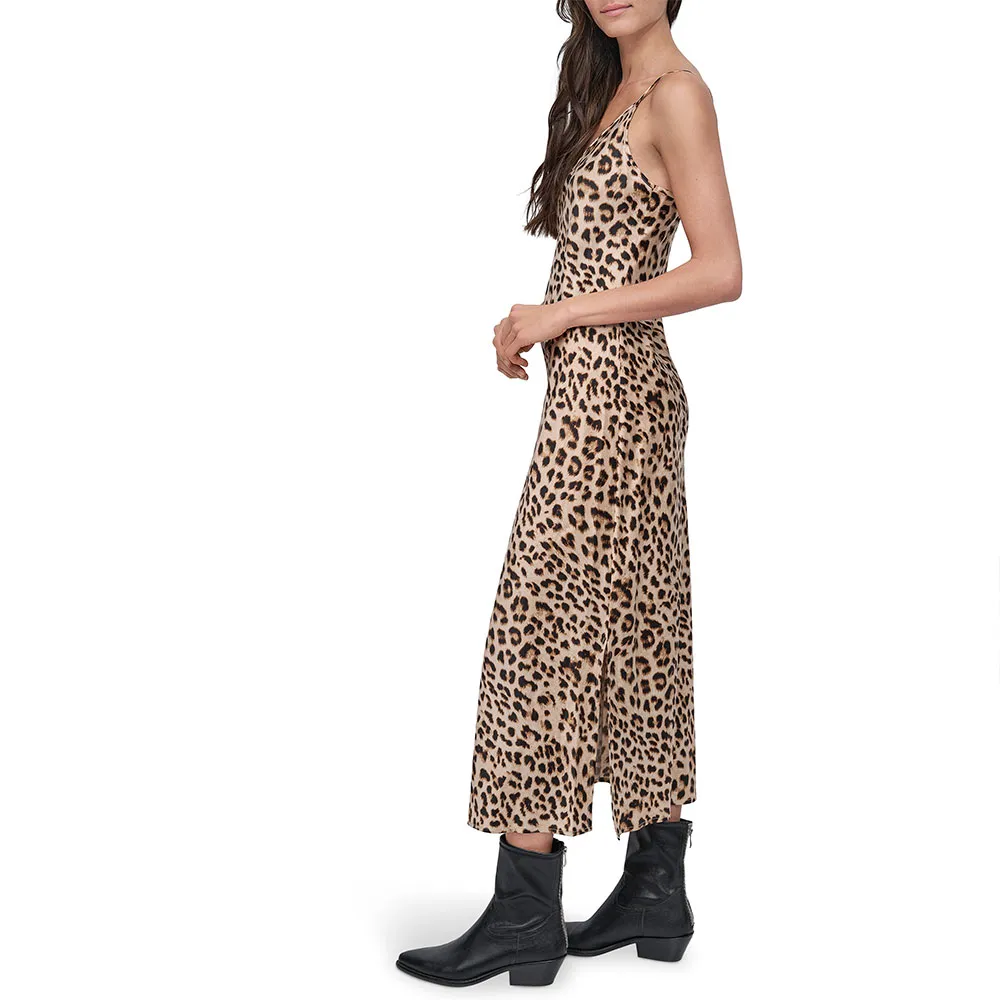 Неподвластный времени V-образный вырез, поддерживаемый тонкими регулируемыми бретельками-спагетти, создает элегантное обрамление для коллетажа DГ и обеспечивает идеальную посадку по фигуре. Поистине эффектное атласное платье миди с анималистичным принтом, бретельками-спагетти и V-образным вырезом.