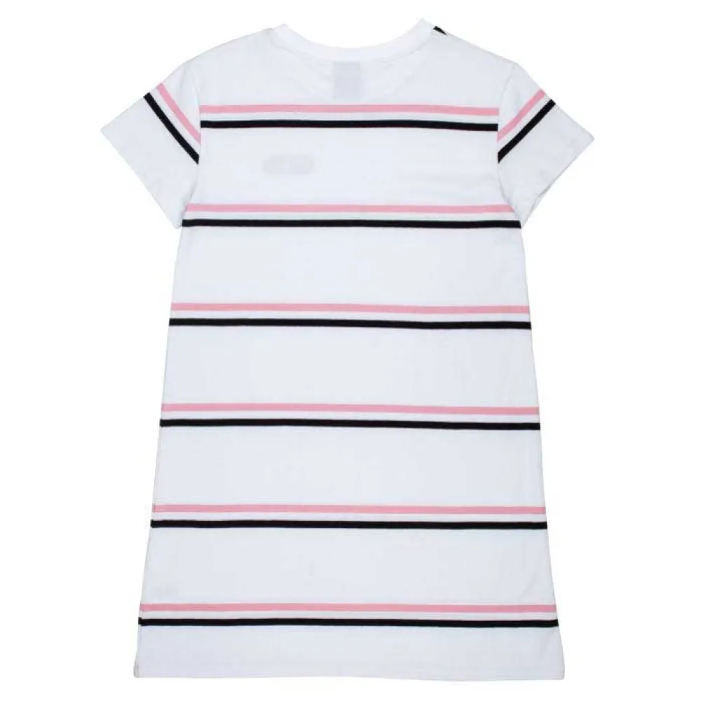 Это исключительное изделие отличается продуманностью деталей и превосходной конструкцией. Классическое платье с короткими рукавами, удобным круглым вырезом и непринужденным кроем, красиво облегающим фигуру. Широкие полоски создают динамичный и визуально привлекательный образ, а привлекательная короткая длина делает его идеальным для более теплой погоды и легкого наложения слоев.