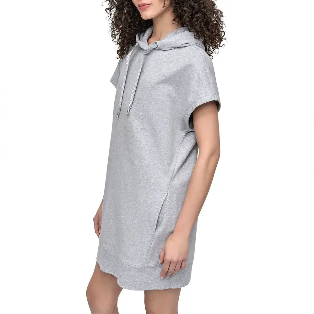 Это изделие мастерски оформлено в виде спортивного платья в стиле толстовки с короткими рукавами, капюшоном, завязками и цветным логотипом. Инновационный двухцветный дизайн с цветовыми блоками сразу привлекает внимание, создавая смелый графический образ, который является квинтэссенцией DKNY. Культовый логотип бренда выделяется ярким цветным штампом на груди, служащим признаком аутентичного дизайна и современной крутизны. Изготовленное из мягкой и дышащей хлопчатобумажной ткани, это платье обеспечивает исключительный комфорт для кожи, что делает его идеальным выбором для ношения в течение всего дня в любое время года.