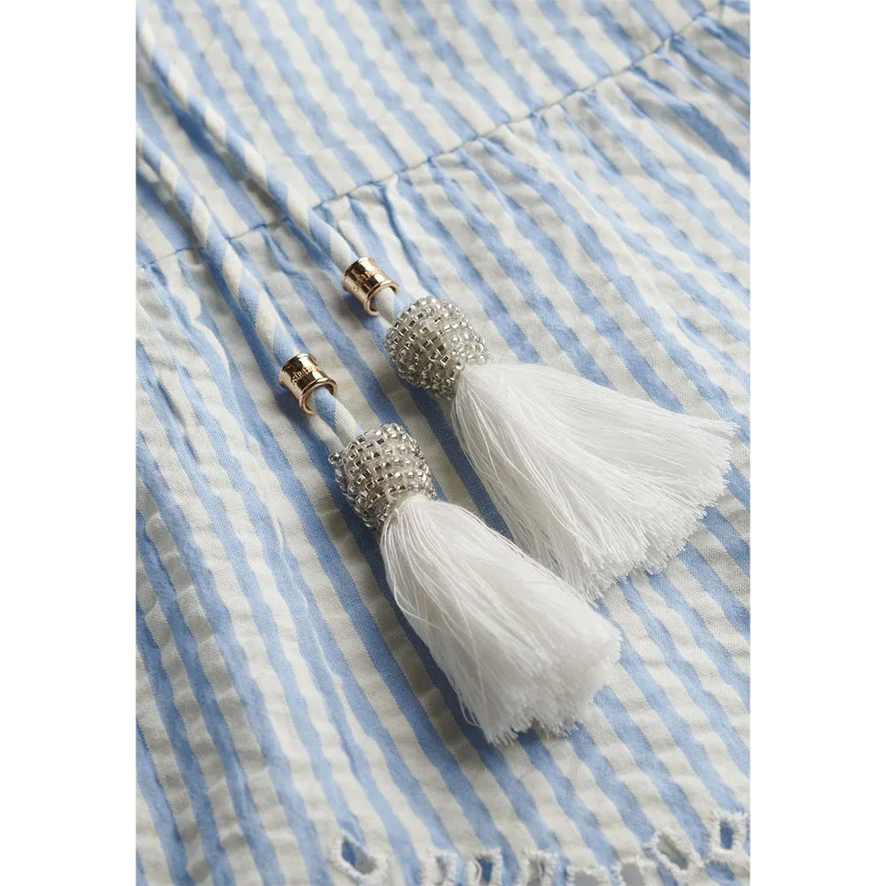 Замысловатая отделка от broderie anglaise придает изделию романтический шарм, а длинные рукава и свободный крой обеспечивают комфорт при носке. Легкая ткань красиво драпируется, создавая привлекательный силуэт, который плавно переходит от дня к ночи.