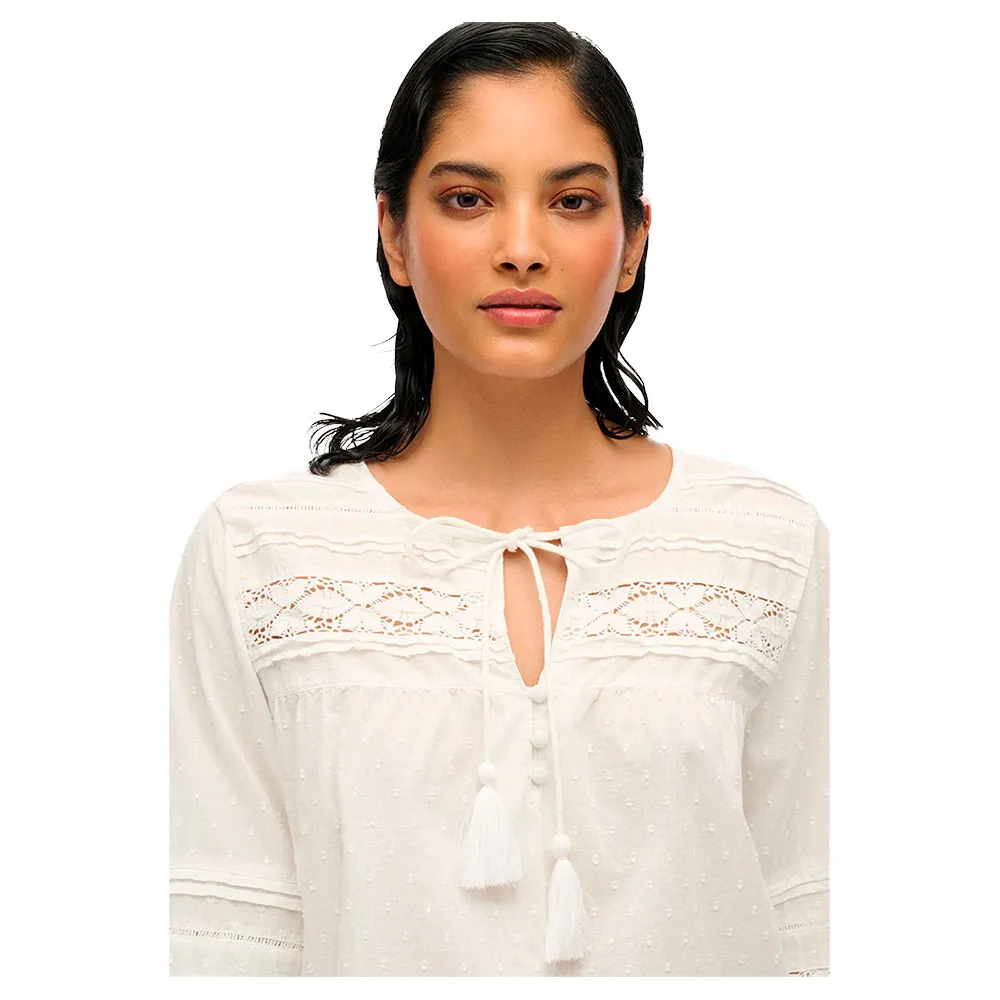 Блузка Superdry Ibiza Lace long sleeve, белый