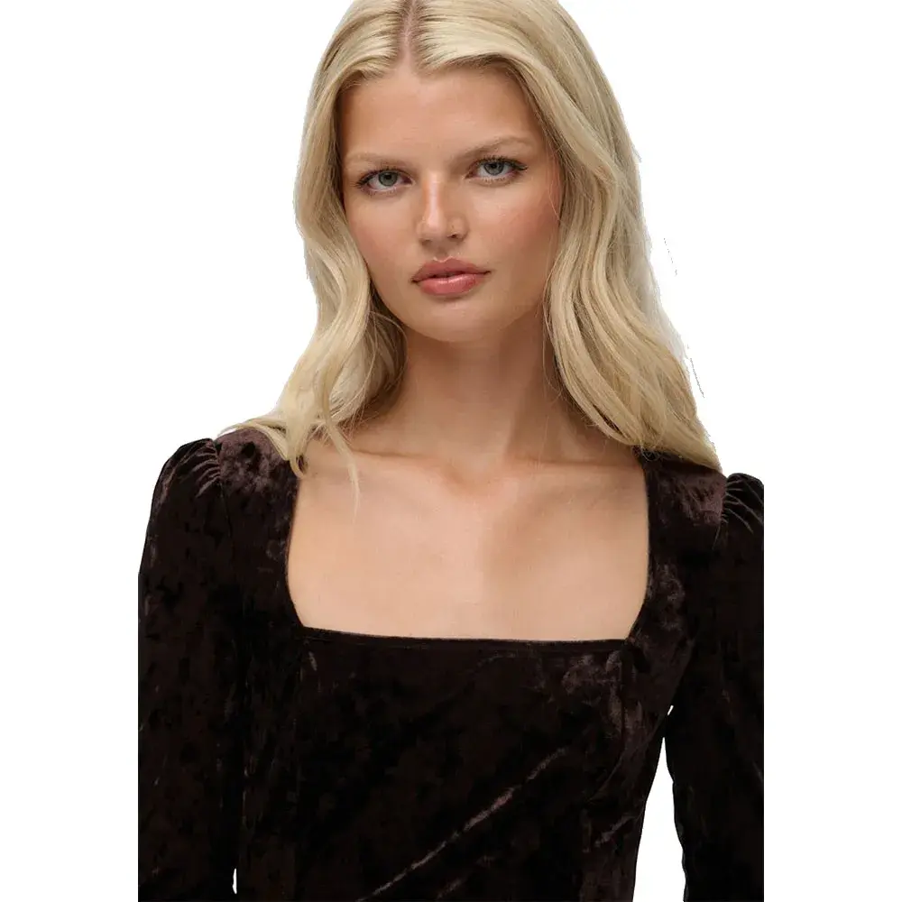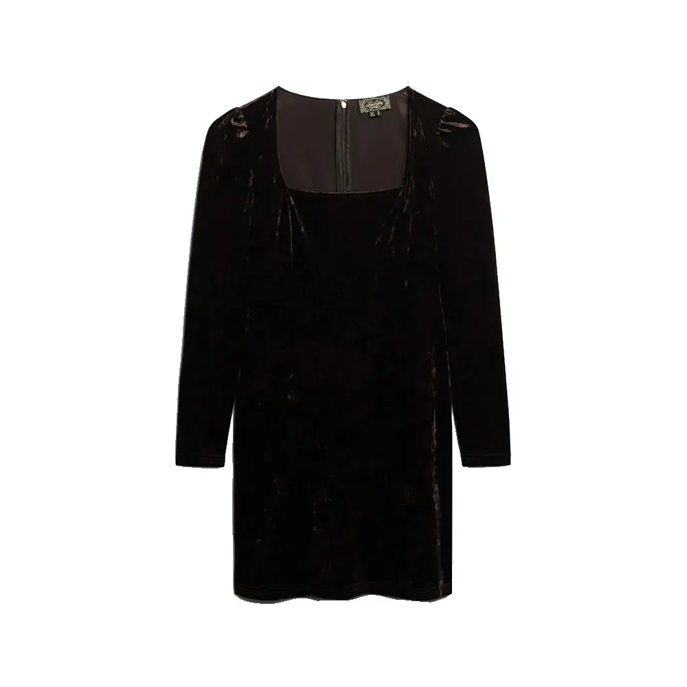 Мини-платье Velvet с квадратным вырезом выполнено из роскошной жатой бархатной ткани, чтобы по-настоящему подчеркнуть ощущение платья. Наряду с квадратным вырезом и рюшами на плечах эти элементы создают привлекательный модный силуэт, который выглядит шикарно и непринужденно в носке.