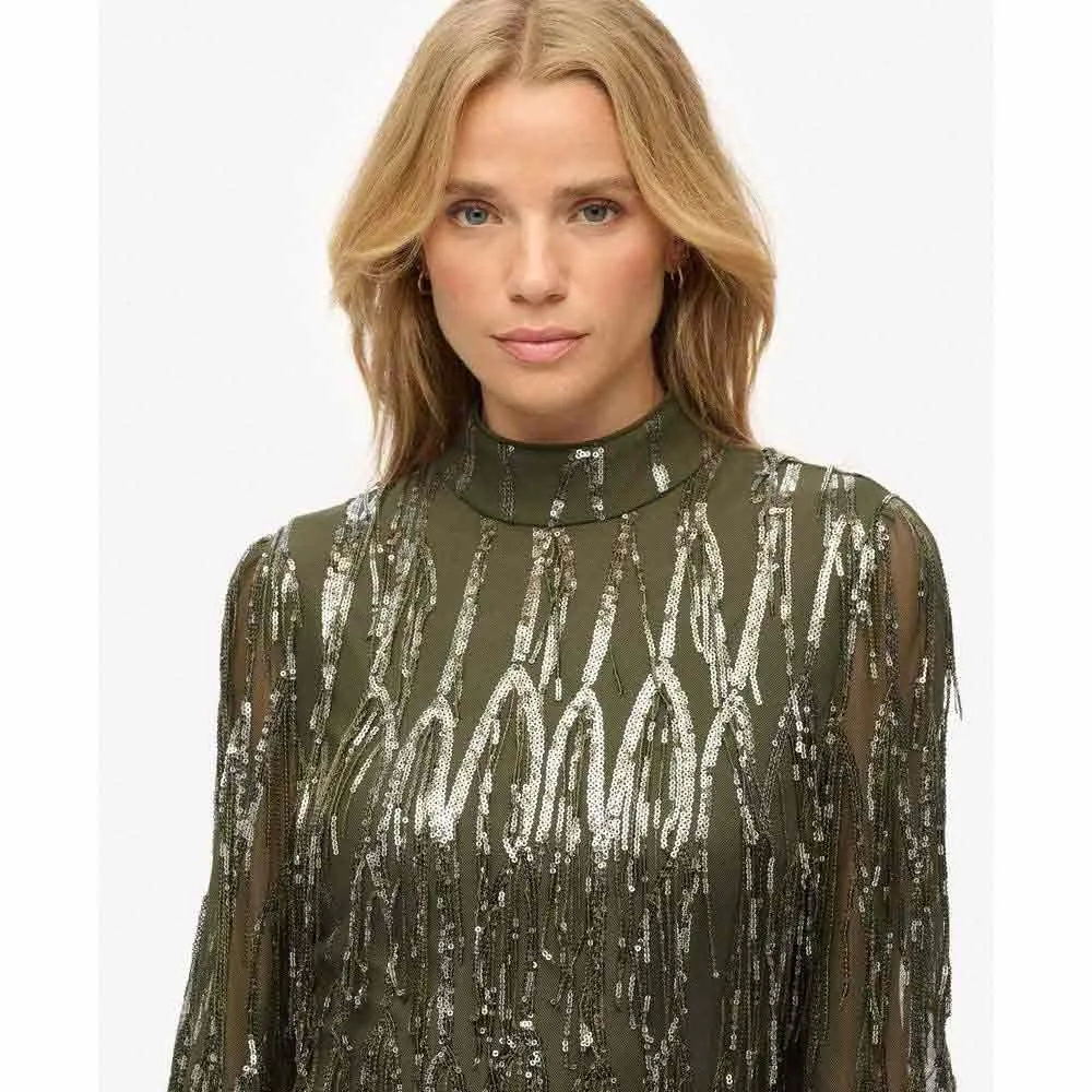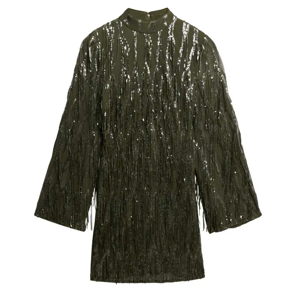 86 см. Мини-платье с бахромой и пайетками - потрясающий вариант для сезона вечеринок.