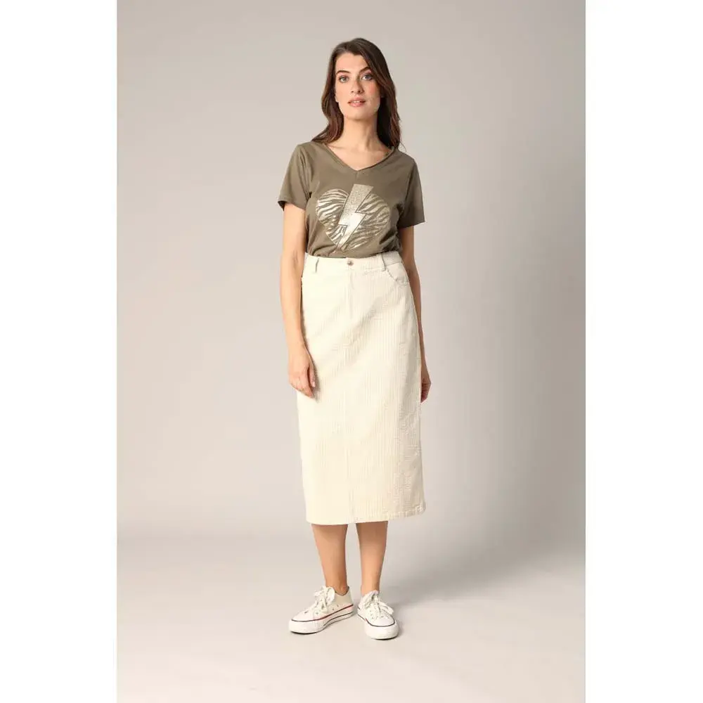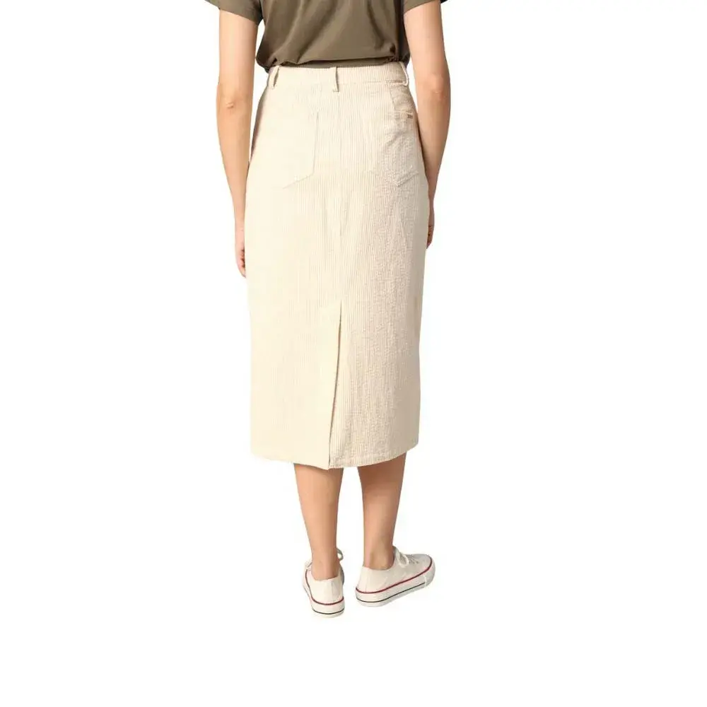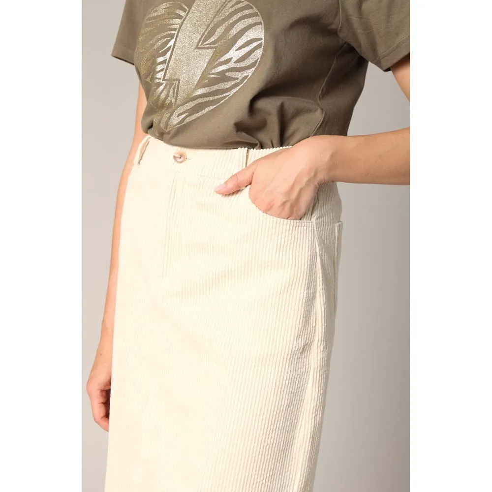 Прямая юбка Meloane длиной миди - изысканный, непринужденный образ. Вельветовая ткань придает ей теплый винтажный вид, а крой с высокой талией красиво подчеркивает силуэт. Он оснащен практичными карманами, незаметной застежкой на молнию и разрезом сзади для комфорта и свободы движений. Его можно носить с ботильонами для городского образа или кроссовками для более повседневного образа, он адаптируется к любым вашим желаниям.