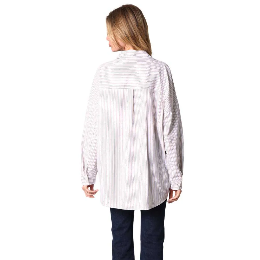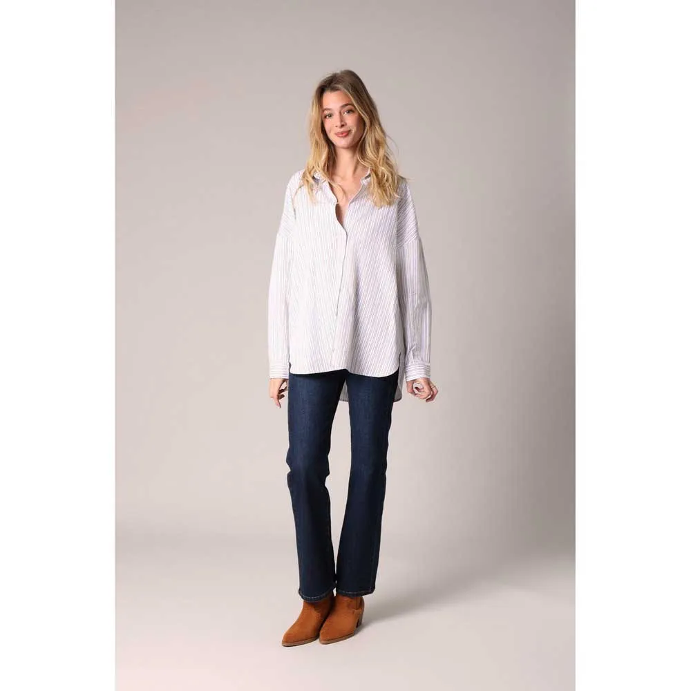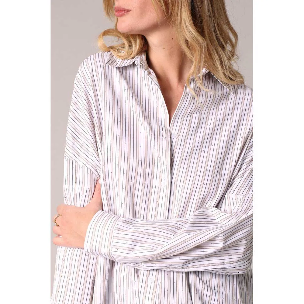 Рубашка OWANY - это новый взгляд на великую классику женского гардероба с современными нотками. Сшитое из текучей и удобной ткани, оно соблазняет своим свободным кроем, тонкими вертикальными полосками и маленькими неброскими стразами, которые улавливают свет. Рубашечный воротник, манжеты на пуговицах и закругленный низ сзади придают изделию элегантности. Модель легко комбинировать как с брюками с высокой талией, так и с джинсами свободного кроя. Эта модель доступна в нескольких цветовых вариациях.