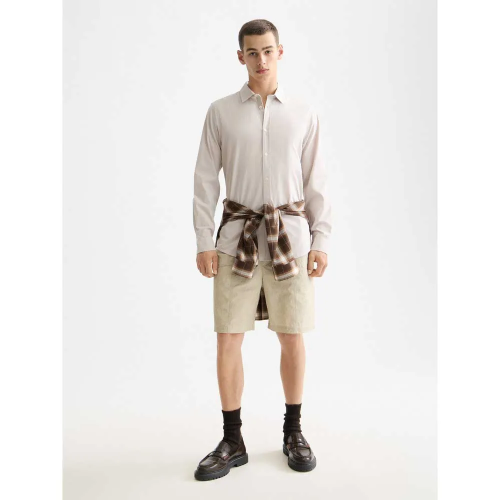 Дизайн основан на классических рубашечных традициях, благодаря острому и структурированному воротнику рубашки, который идеально обрамляет лицо, независимо от того, застегнут ли он доверху или оставлен открытым для более непринужденного образа. Планка на пуговицах спереди и дизайн длинных рукавов с манжетами на пуговицах придают ему вневременную привлекательность, предлагая варианты закатывания рукавов для создания непринужденной атмосферы. Каждая деталь, от точной строчки до качественных пуговиц, отражает стремление Scotch & Sod к высочайшему мастерству.