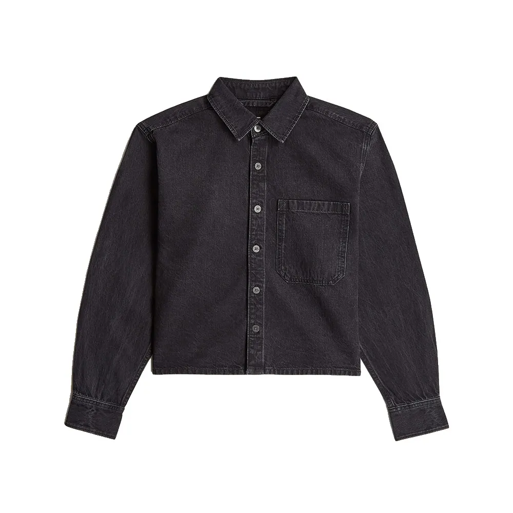 Свободная рубашка свободного кроя с 1 карманом, укороченной длиной и длинными рукавами.