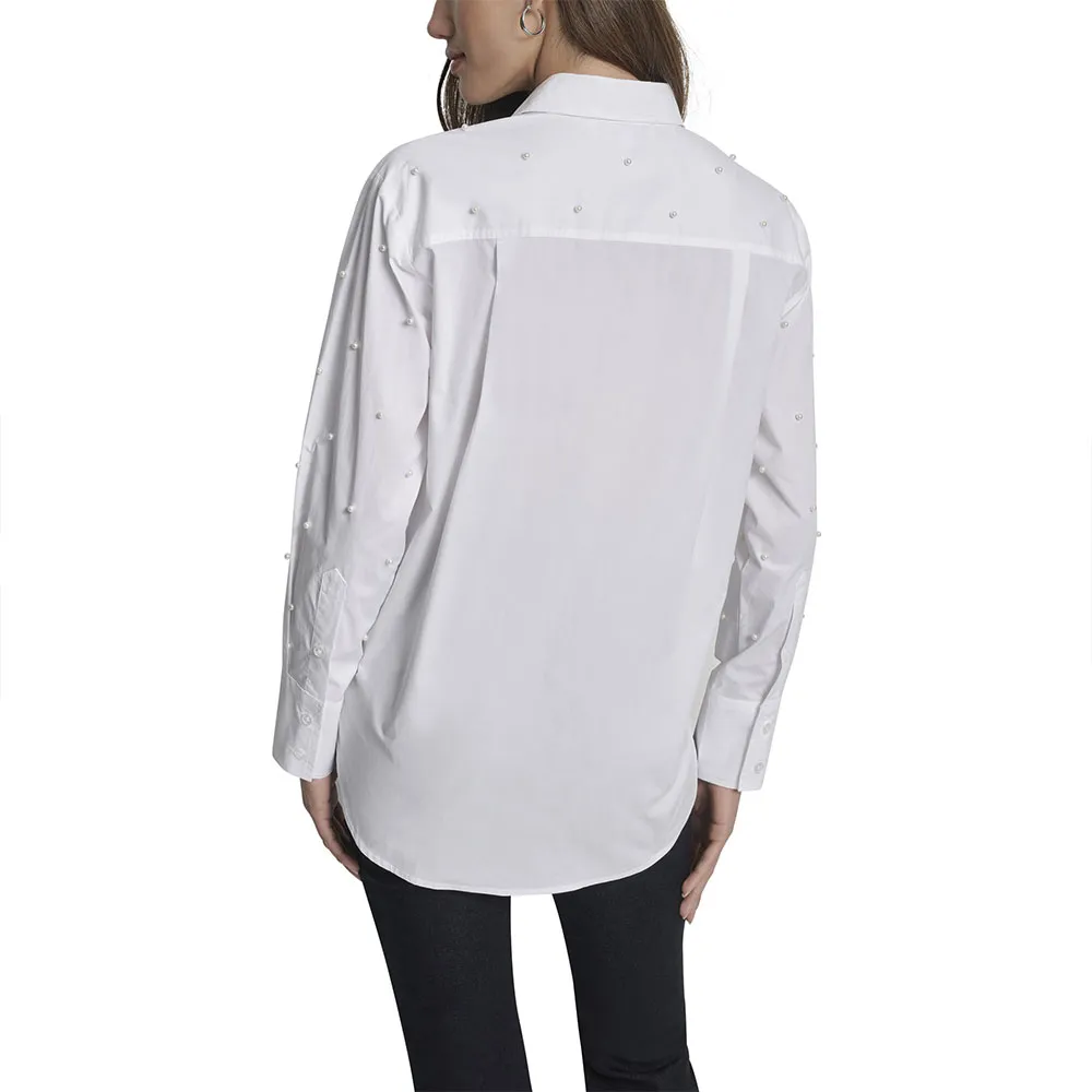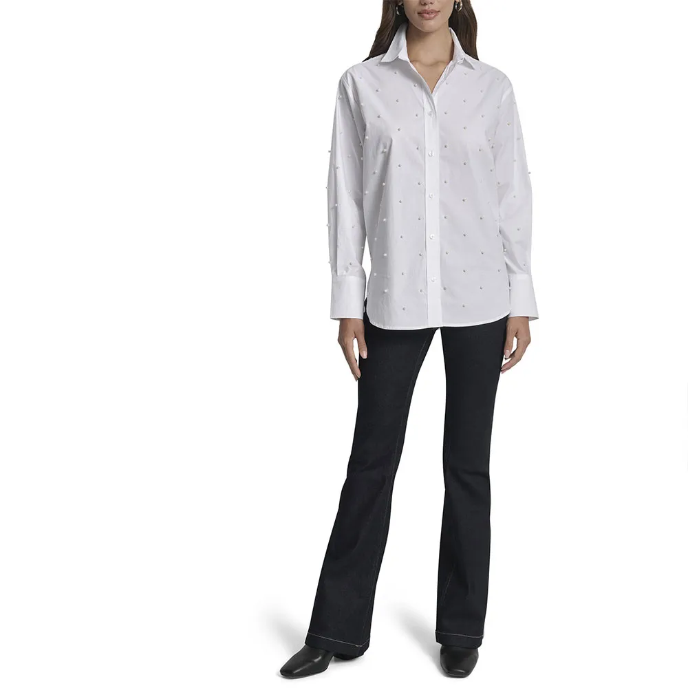 Хлопковая блузка, украшенная жемчугом DKNY: неподвластная времени элегантность в современном стиле