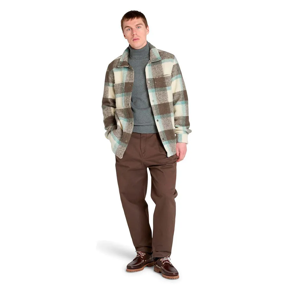 Сшитый из смеси 55% шерсти и 45% полиэстера, он поможет вам согреться в удобной клетчатой одежде.