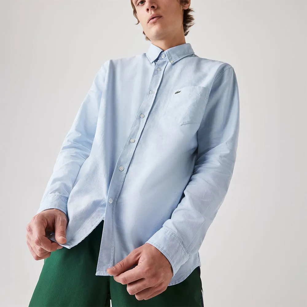 Рубашка с длинным рукавом Lacoste Cotton Oxford, синий