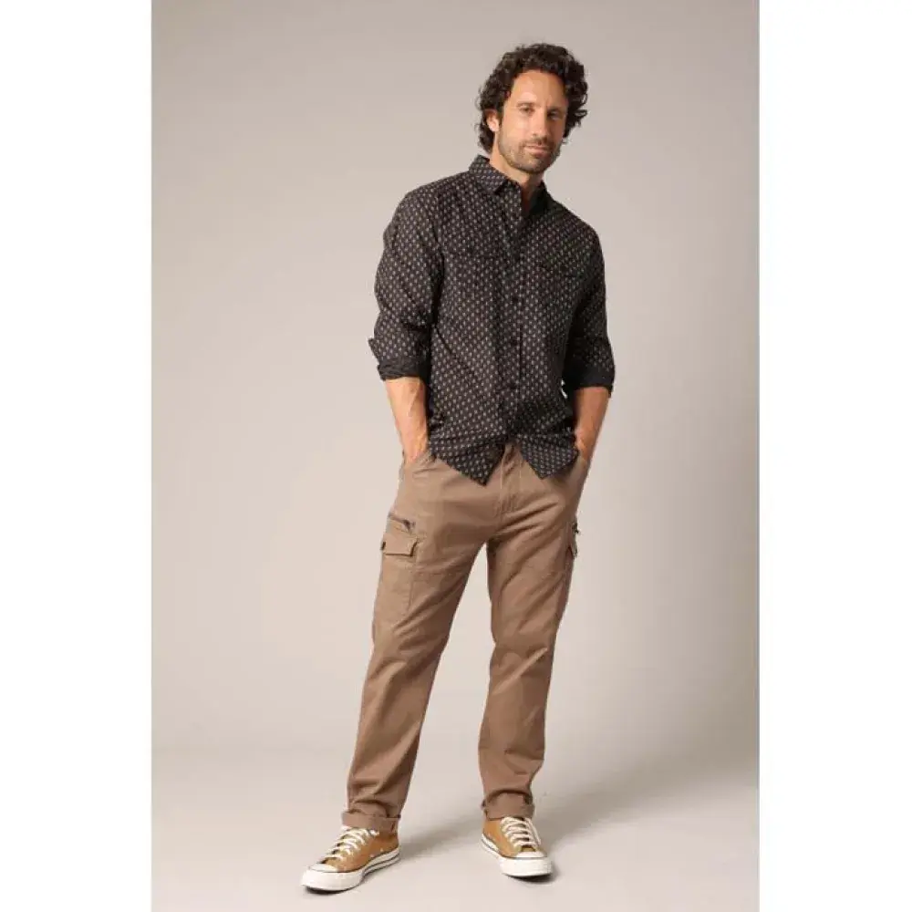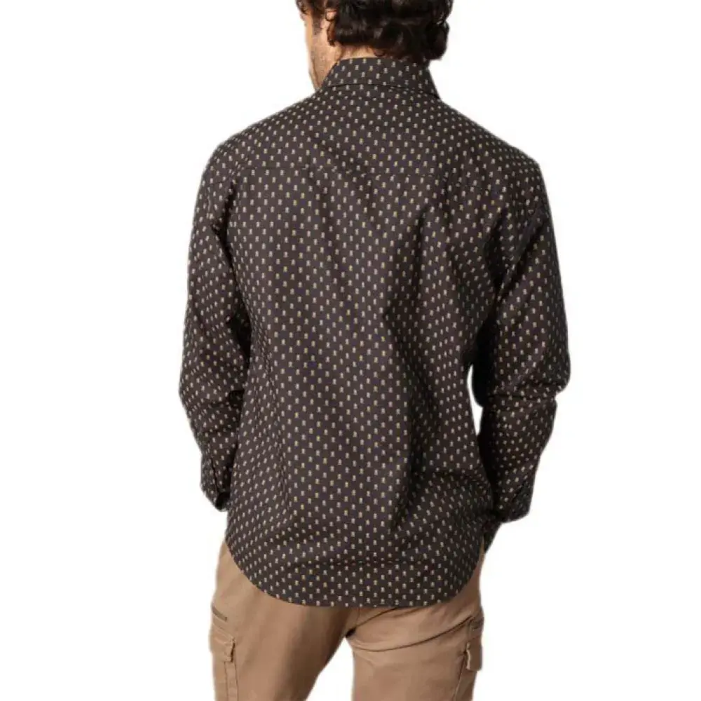 Эта рубашка с длинными рукавами украшена характерным графическим принтом с золотыми вставками, который добавляет нотку оригинальности, но при этом не бросается в глаза. Благодаря классическому воротнику и двум нагрудным карманам с клапанами на пуговицах, модель отличается как городским, так и повседневным стилем. Прямой крой подходит для любого типа фигуры, его можно носить заправленным или как верхнюю рубашку. Этот стиль легко впишется в повседневный шикарный наряд, будь то брюки-чинос или джинсы.