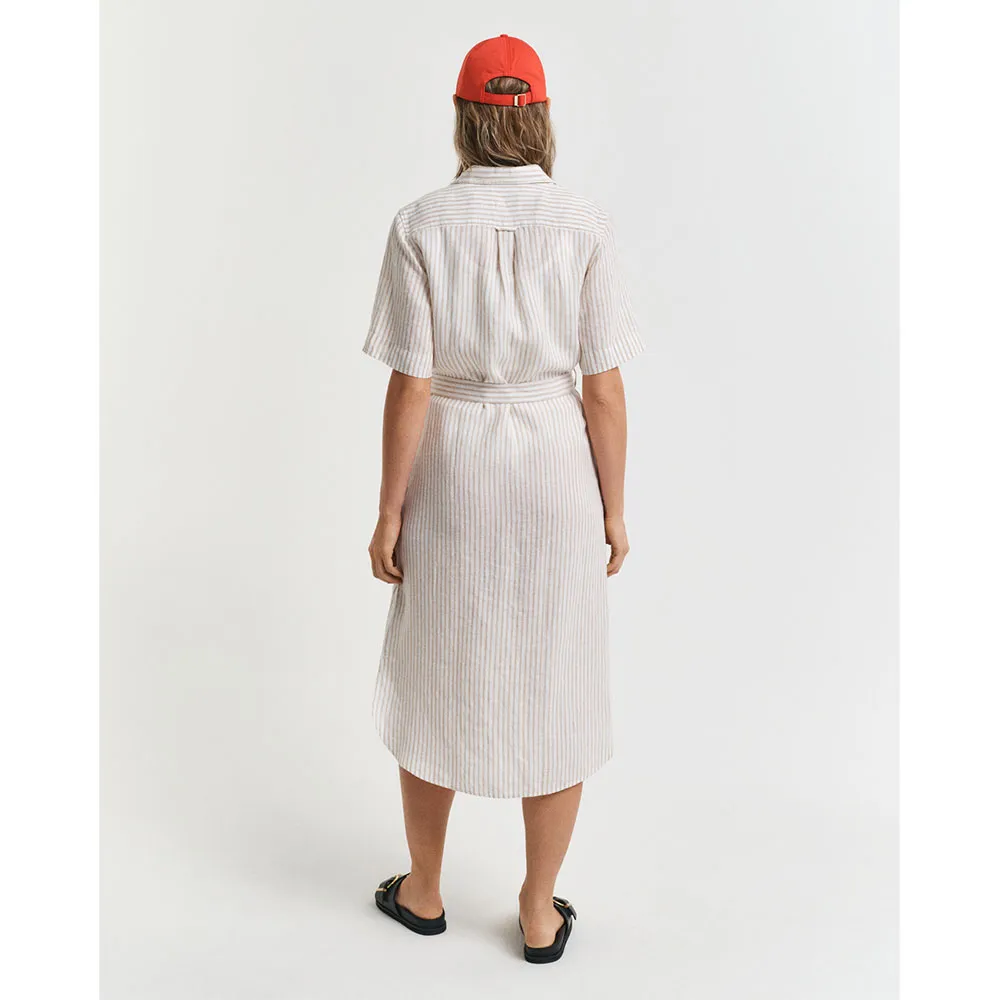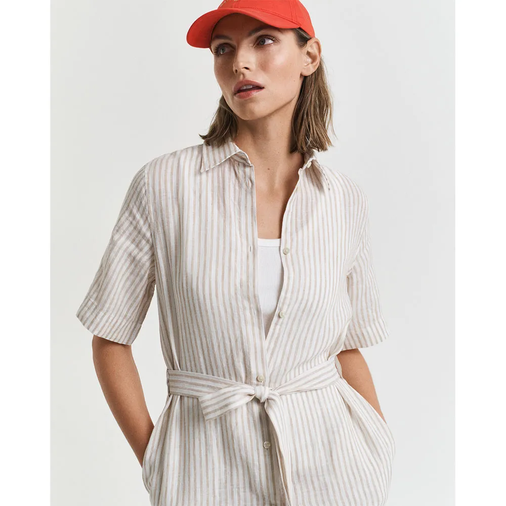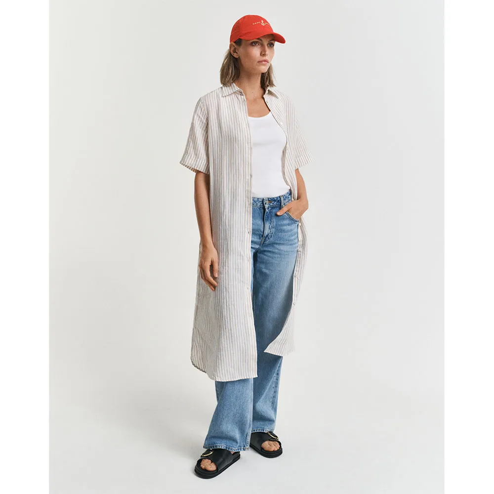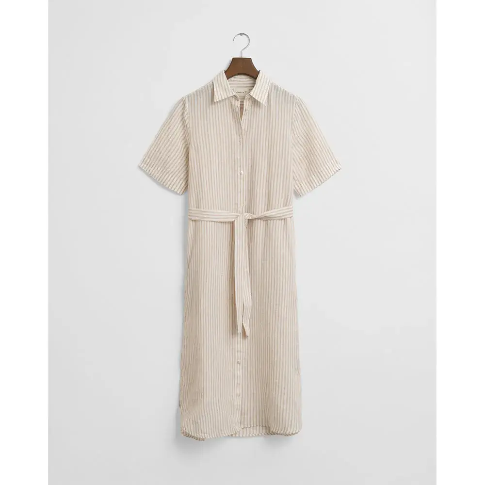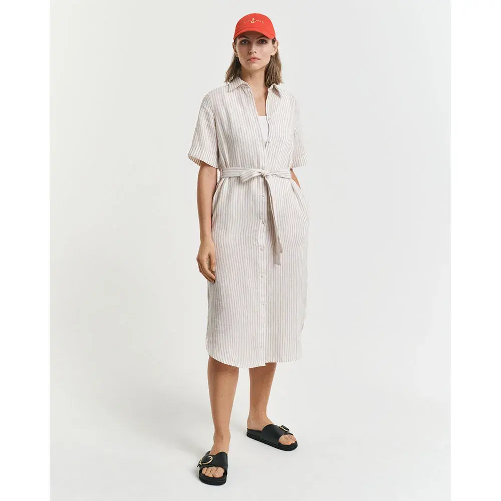 Это летнее платье от GANT, изготовленное из сертифицированного европейского льняного полотна, обеспечивающего воздухопроницаемость и легкость на ощупь.