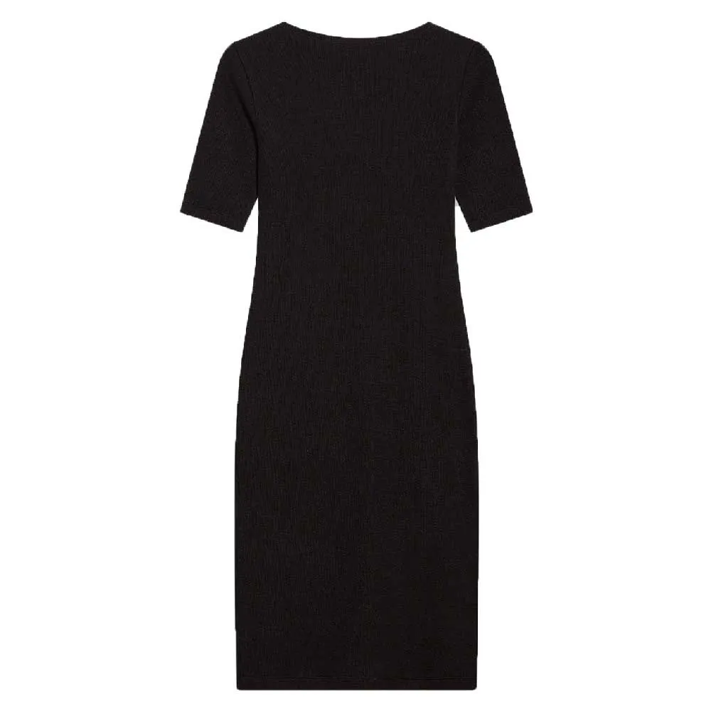Это платье в рубчик длиной миди, сшитое из мягкой текстурированной ткани с отличной эластичностью, обеспечивает облегающий, но подчеркивающий фигуру силуэт. Легко надеваемый, он легко переходит от повседневных мероприятий к офисным будням.