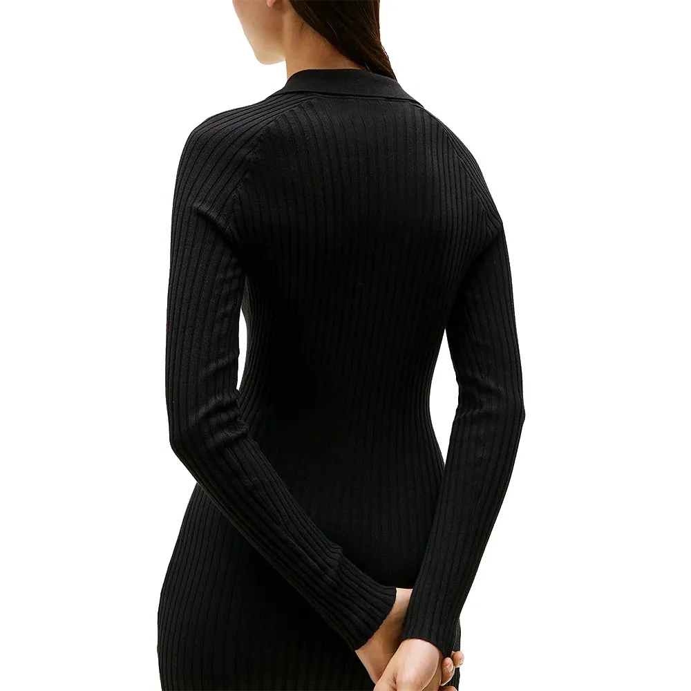 Это платье-свитер приталенного силуэта со структурированным воротником и длинными рукавами.