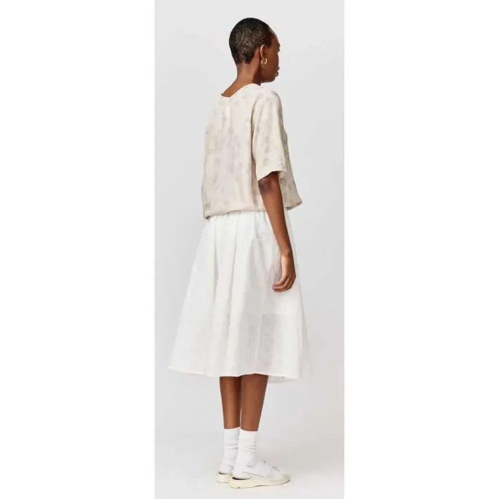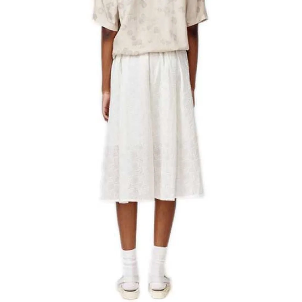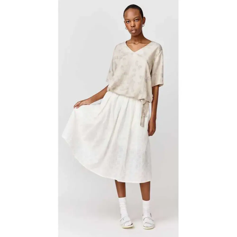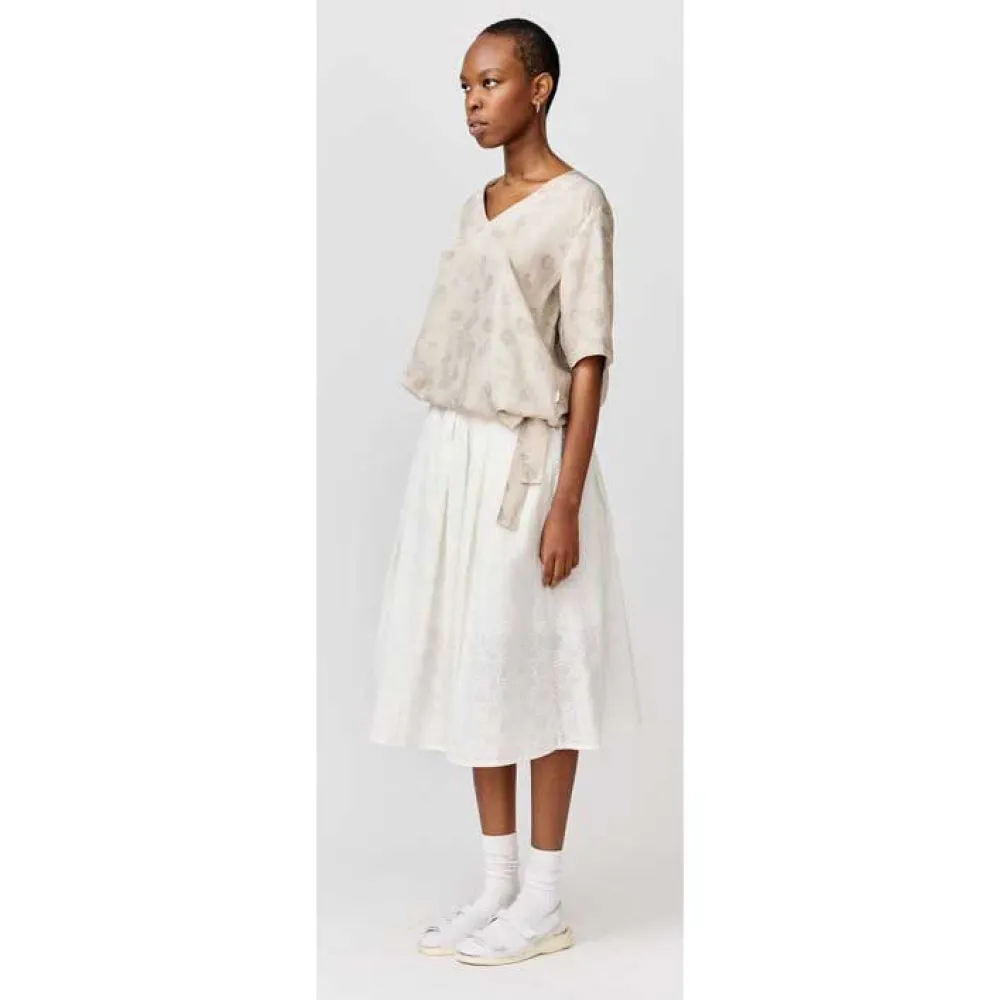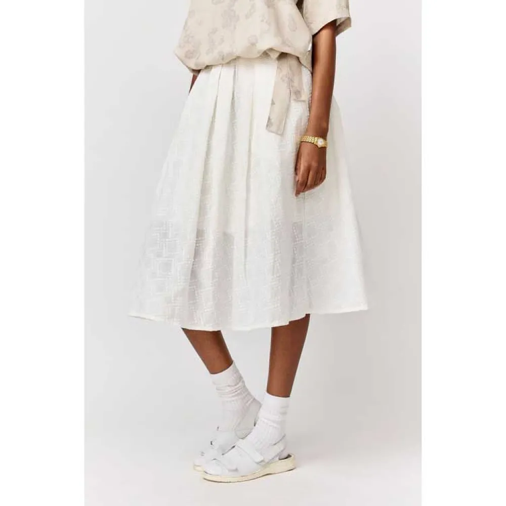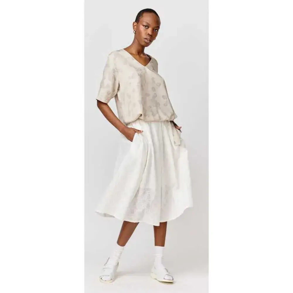 Юбка миди-длины на а-образной подкладке обычного кроя. Юбка Lotte украшена вышитым рисунком и складками на эластичном поясе.