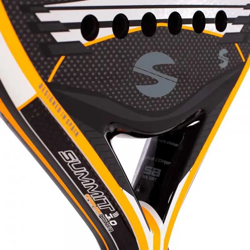 Ракетка для паделя Summit выполнена в гибридной форме с покрытием из карбона 3K, глянцевым 3D-рельефом, что обеспечивает больший эффект во время игры.