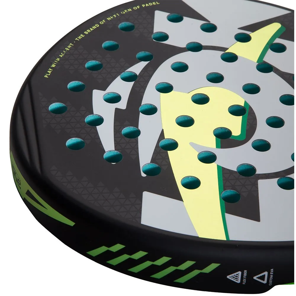 - Смешанный углерод. В коллекции Generation ONE мы работаем с углеродом в трех различных плоскостях. Благодаря этой технологии мы можем регулировать углы соединения слоев волокон для достижения необходимой гибкости. Накладка EVA Custom: Наши ракетки Generation ONE изготовлены из уникальной накладки с превосходной памятью формы, что позволяет игроку достигать большей мощности при ударе. Память - это способность накладки восстанавливать исходное положение за более короткое время после удара мячом. Благодаря своей плотности эта накладка адаптируется к форме каждого игрока и представлена в эксклюзивном зеленом цвете, соответствующем фирменной линейке бренда.