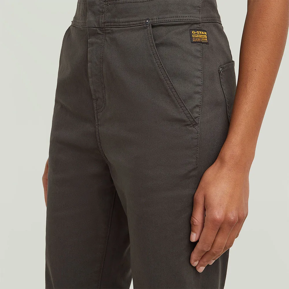 Приталенный комбинезон с завышенной талией и изящной застежкой на молнию и пуговицы, придающий современный вид классическому комбинезону.