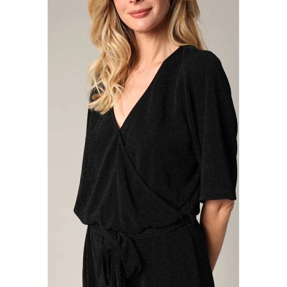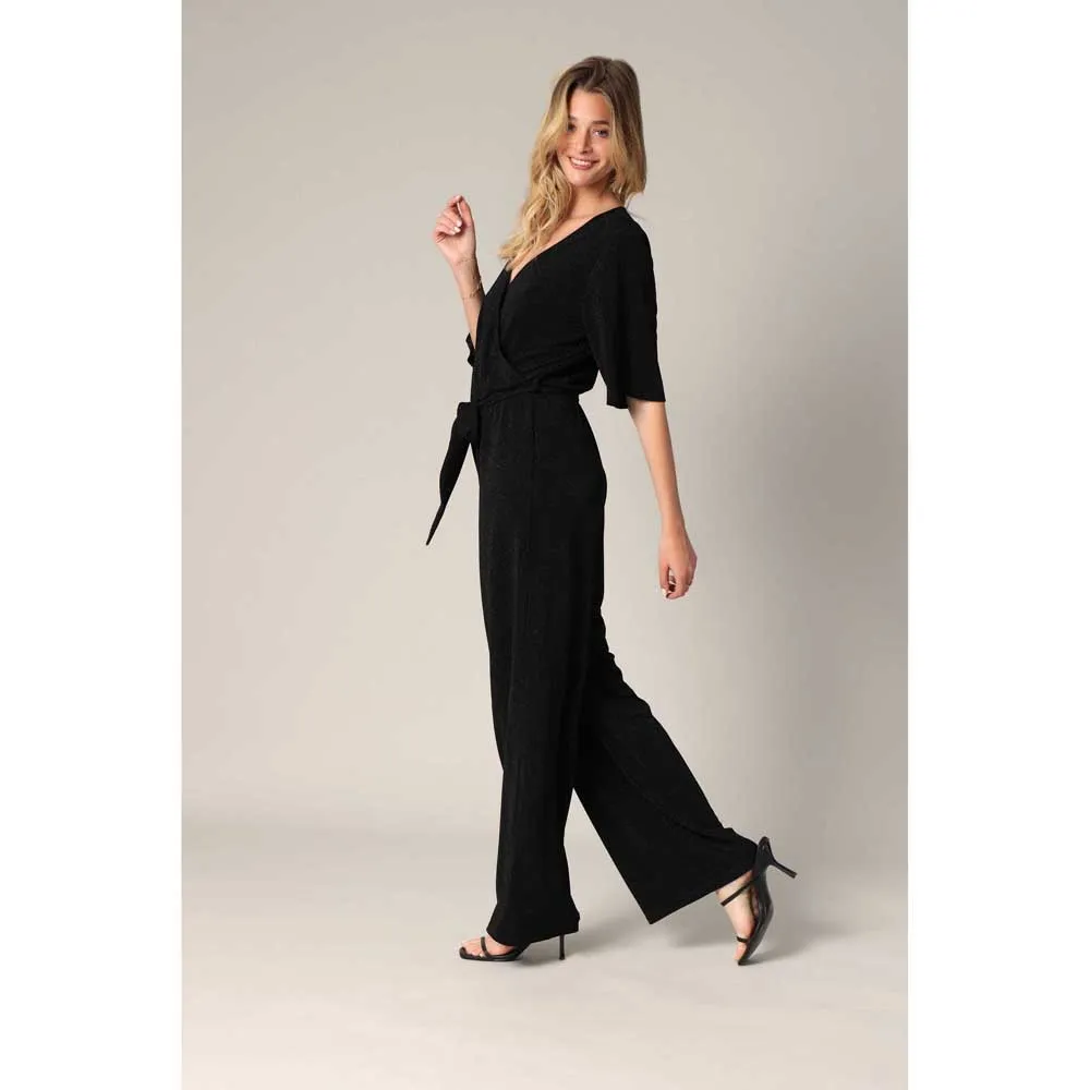 Этот комбинезон возвращает к минималистской элегантности с легким блеском. Его струящийся крой удлиняет силуэт, а вырез с эффектом обертывания деликатно подчеркивает верхнюю часть тела. Широкие рукава обеспечивают шикарный комфорт, идеально подходят как для особых случаев, так и для импровизированных вечеров. Талия подчеркнута поясом тон в тон, красиво подчеркивающим силуэт. Нам также нравится ткань, слегка расшитая блестками, которая незаметно улавливает свет и придает ансамблю праздничный оттенок.