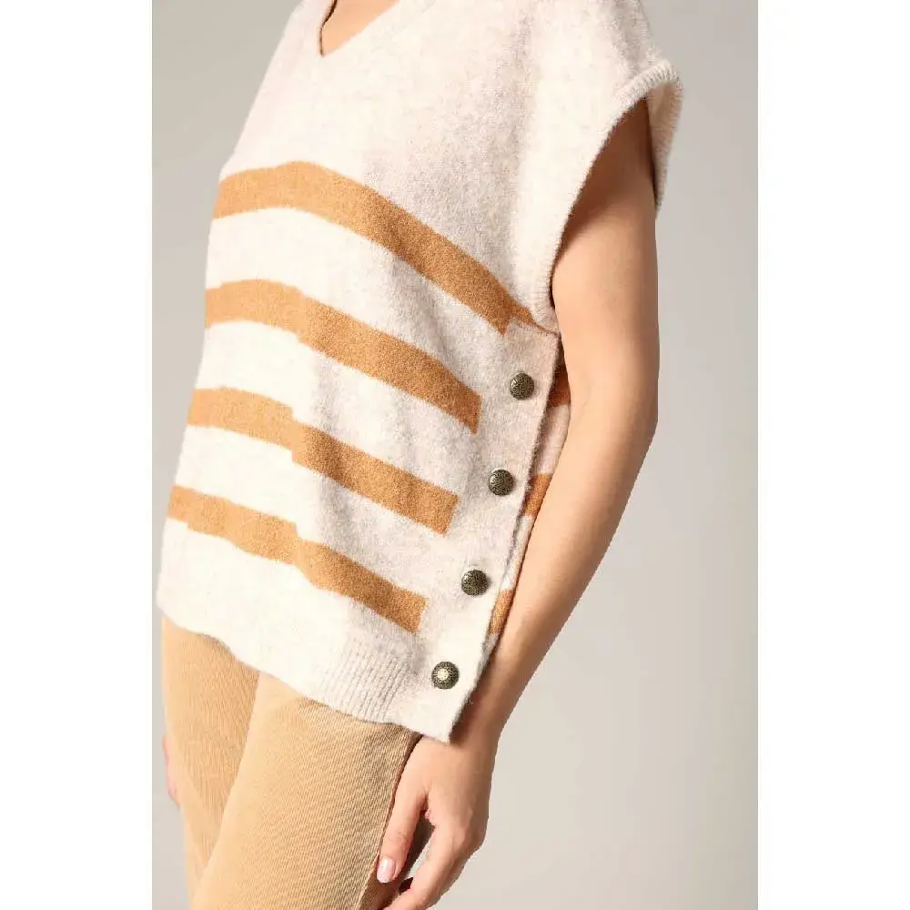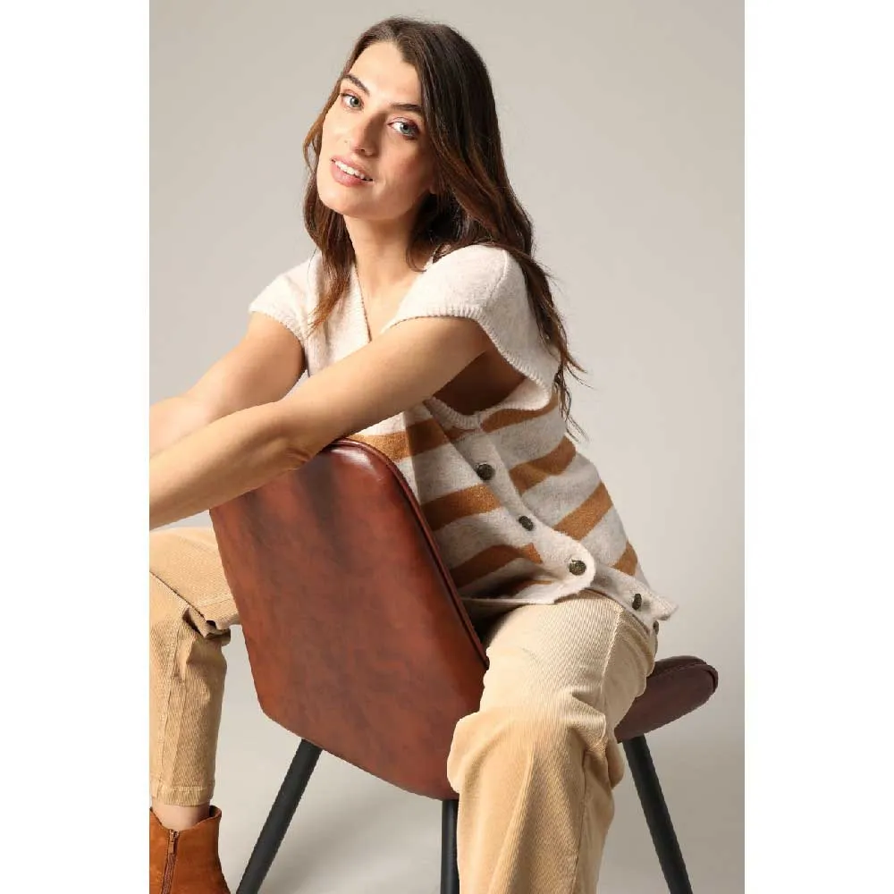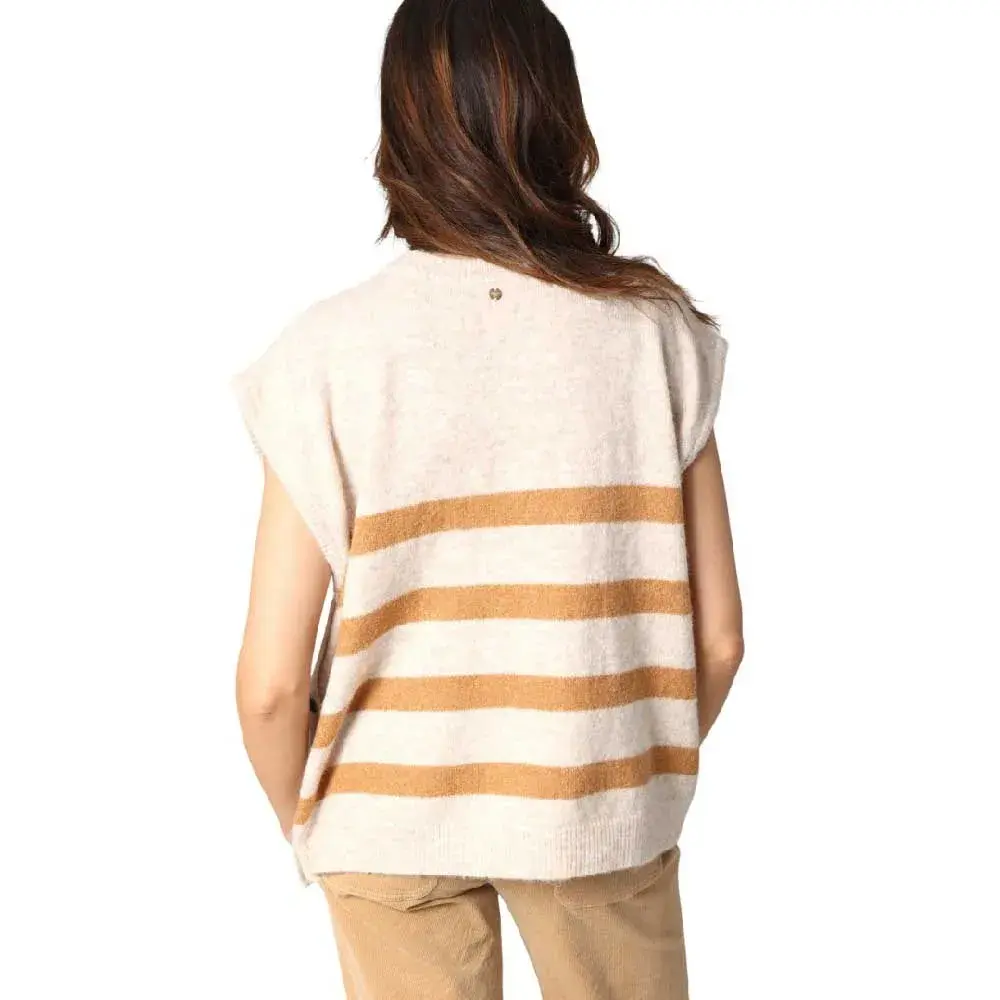 Безрукавка Birdy воссоздает морской дух с оттенком непринужденной элегантности. Из мягкого и слегка пушистого трикотажа она выделяется широкими контрастными полосками, которые удлиняют силуэт и придают ему глубину. Золотые пуговицы по бокамвЂ"чисто декоративные добавляют утонченный винтажный оттенок. V-образный вырез подчеркивает фигуру, а прямой крой естественным образом адаптируется к любым формам тела. Носите его отдельно, как только появятся первые лучи солнца, или поверх рубашки, если утро будет прохладным. Birdy - стильный союзник для повседневных образов или импровизированных выходных. Любимая вещь, которая доказывает, что безрукавка тоже может быть очень шикарной.