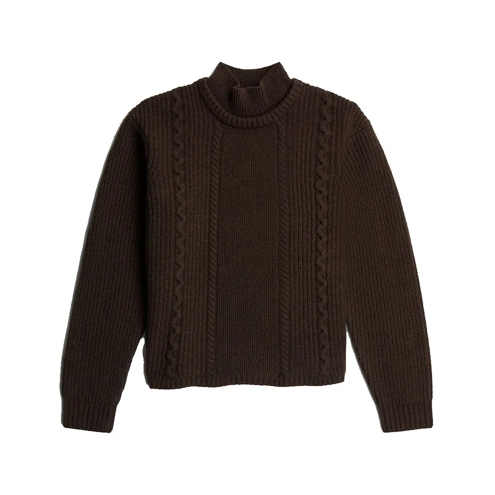 Вязаное изделие с двойным воротником имеет уникальный дизайн горловины "черепаха" с правильной посадкой.