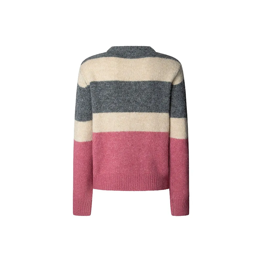 Длинный рукав с округлым вырезом горловины, вязаный в цветную полоску, спереди логотип intarsia.