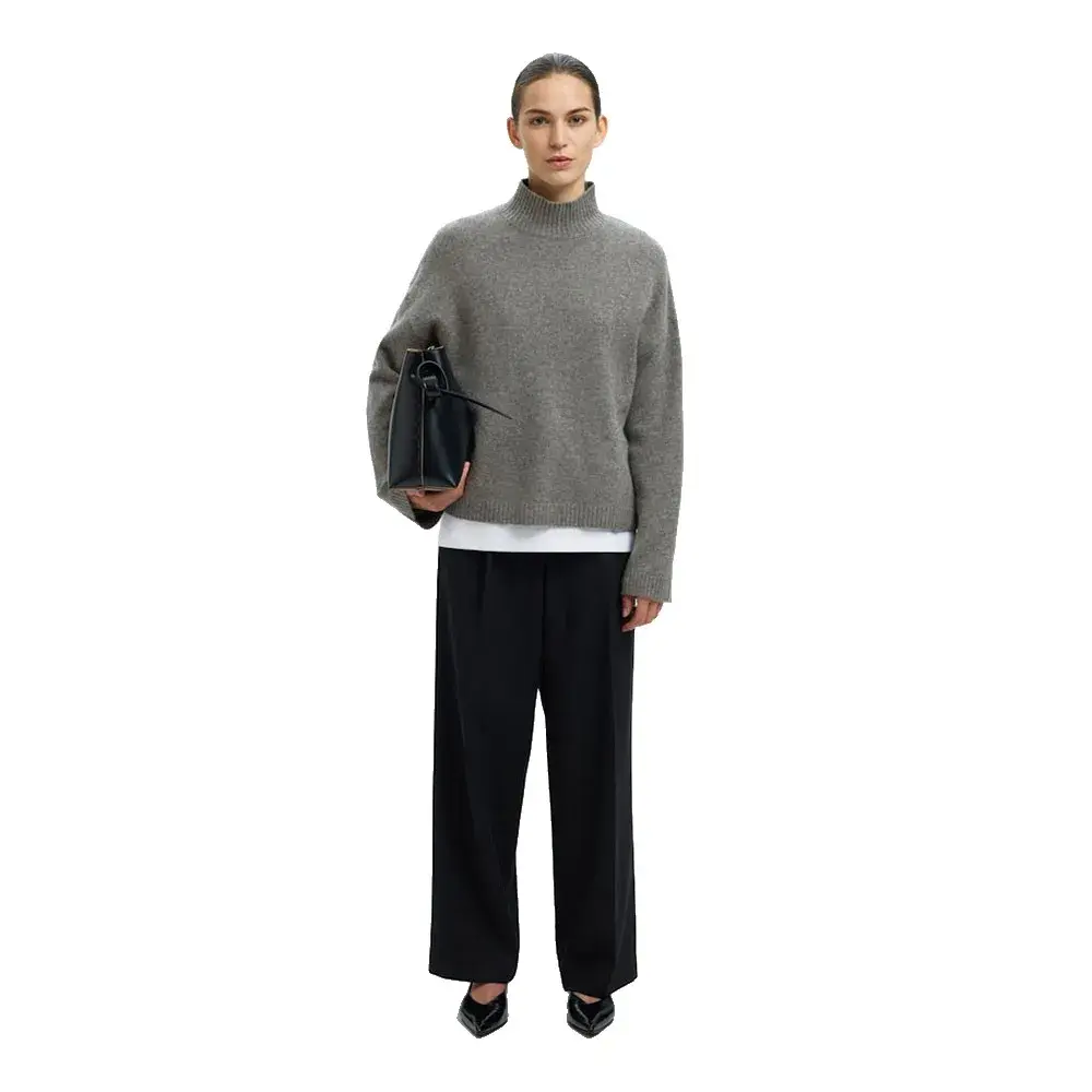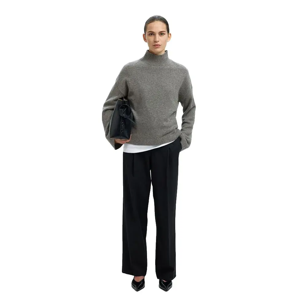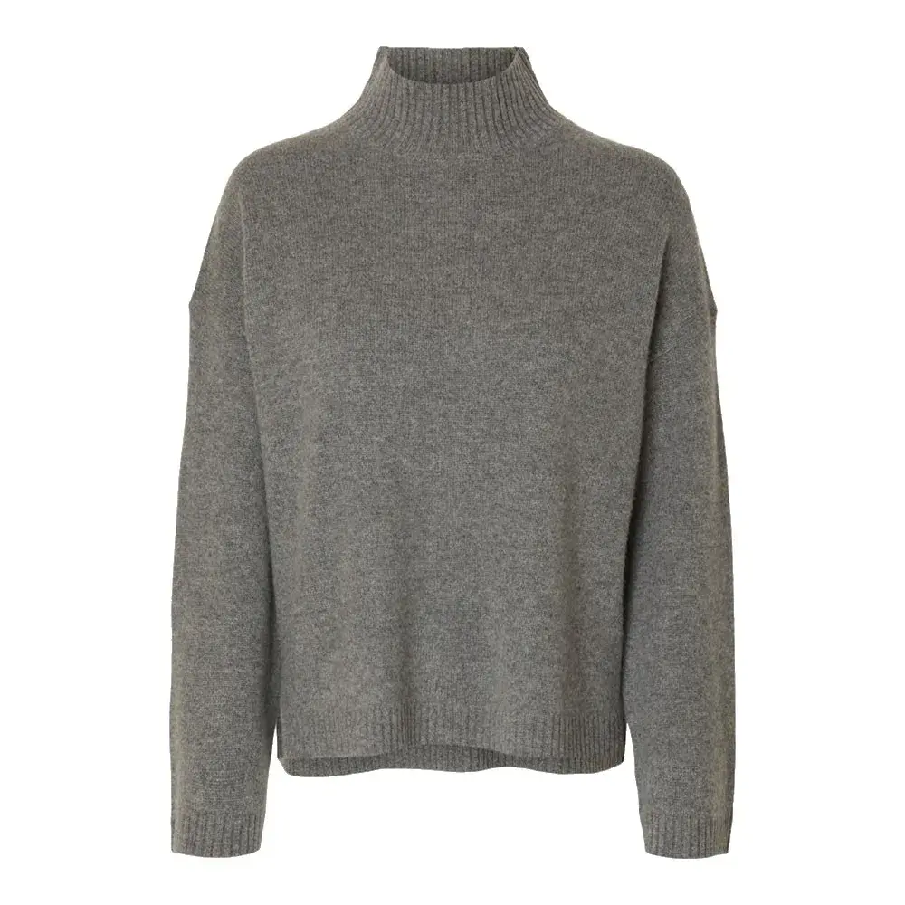 Свитер Selected Cille Cashmere high neck, серый