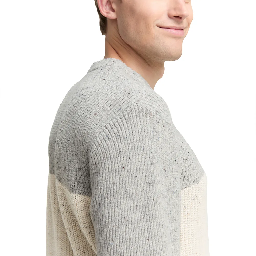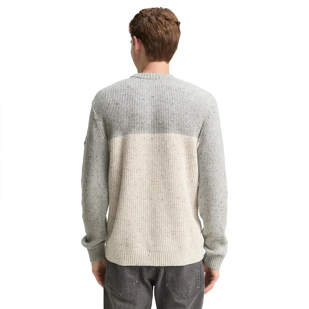 - Текстурированный джемпер меланжевого цвета со значком логотипа на верхнем рукаве и манжетами в рубчик по низу.