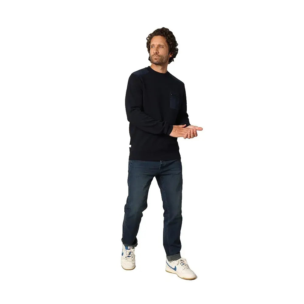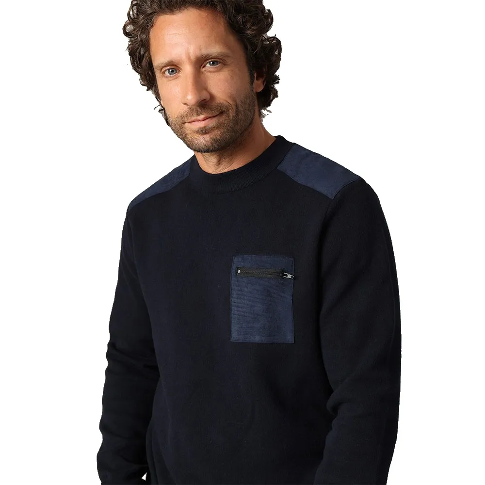 - Этот повседневный шикарный свитер подчеркивает детали, не переусердствовав с ними. Мягкий трикотаж дополнен контрастными замшевыми вставками на плечах и нагрудным карманом на молнии тон в тон, что придает изделию продуманный утилитарный вид.