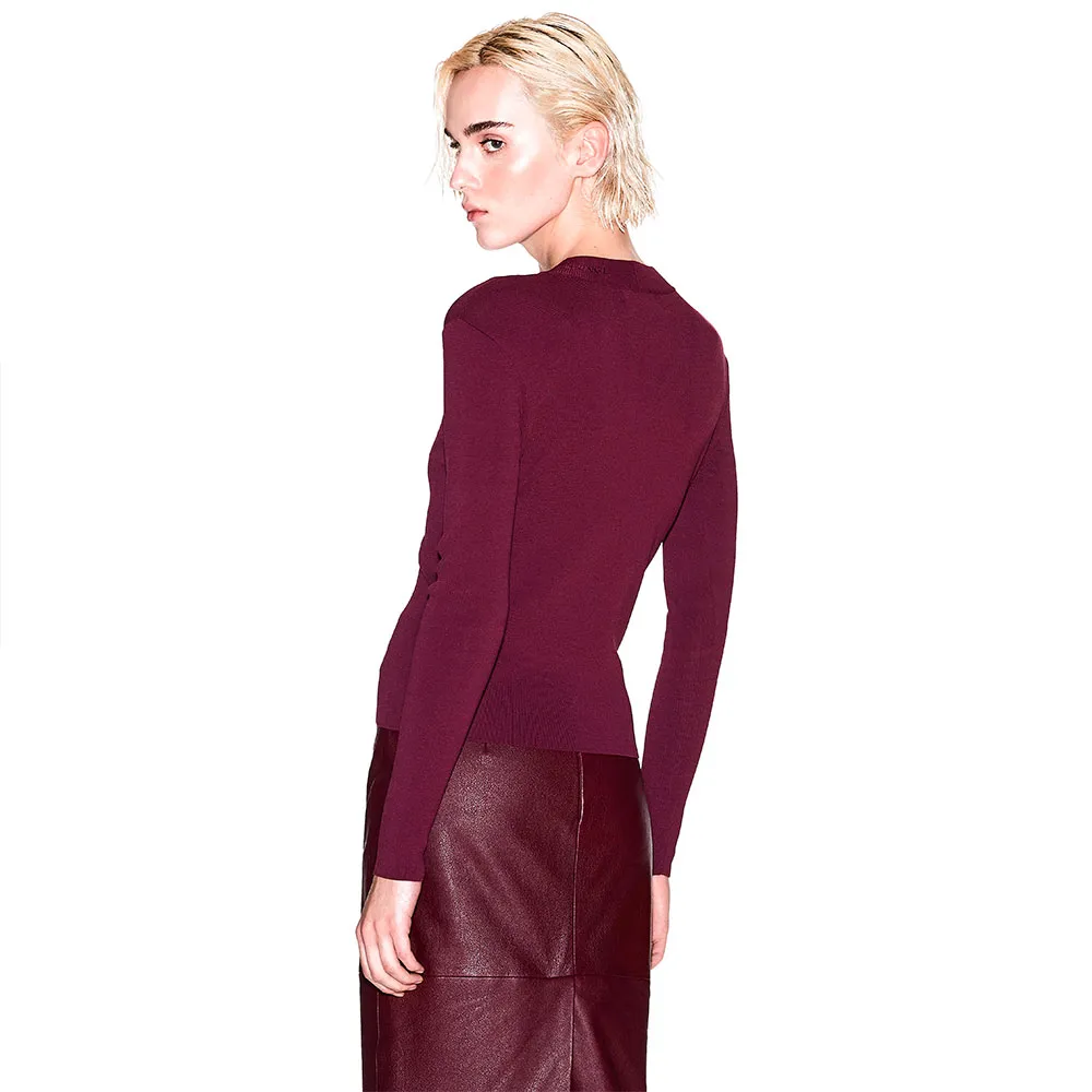 Основное преимущество свитера заключается в его безупречном силуэте. Современный приталенный крой изящно облегает фигуру, создавая гладкий и привлекательный профиль, который одновременно шикарен и удобен. Такой индивидуальный крой гарантирует, что его можно носить как потрясающую самостоятельную вещь или легко надевать под блейзер или жакет, не добавляя объема. Неподвластный времени круглый вырез создает классическую основу, что делает его универсальной основой для множества аксессуаров, от изящных ожерелий до смелых шарфов. Длинные приталенные рукава дополняют обтекаемую эстетику, обеспечивая безупречный вид со всех сторон.