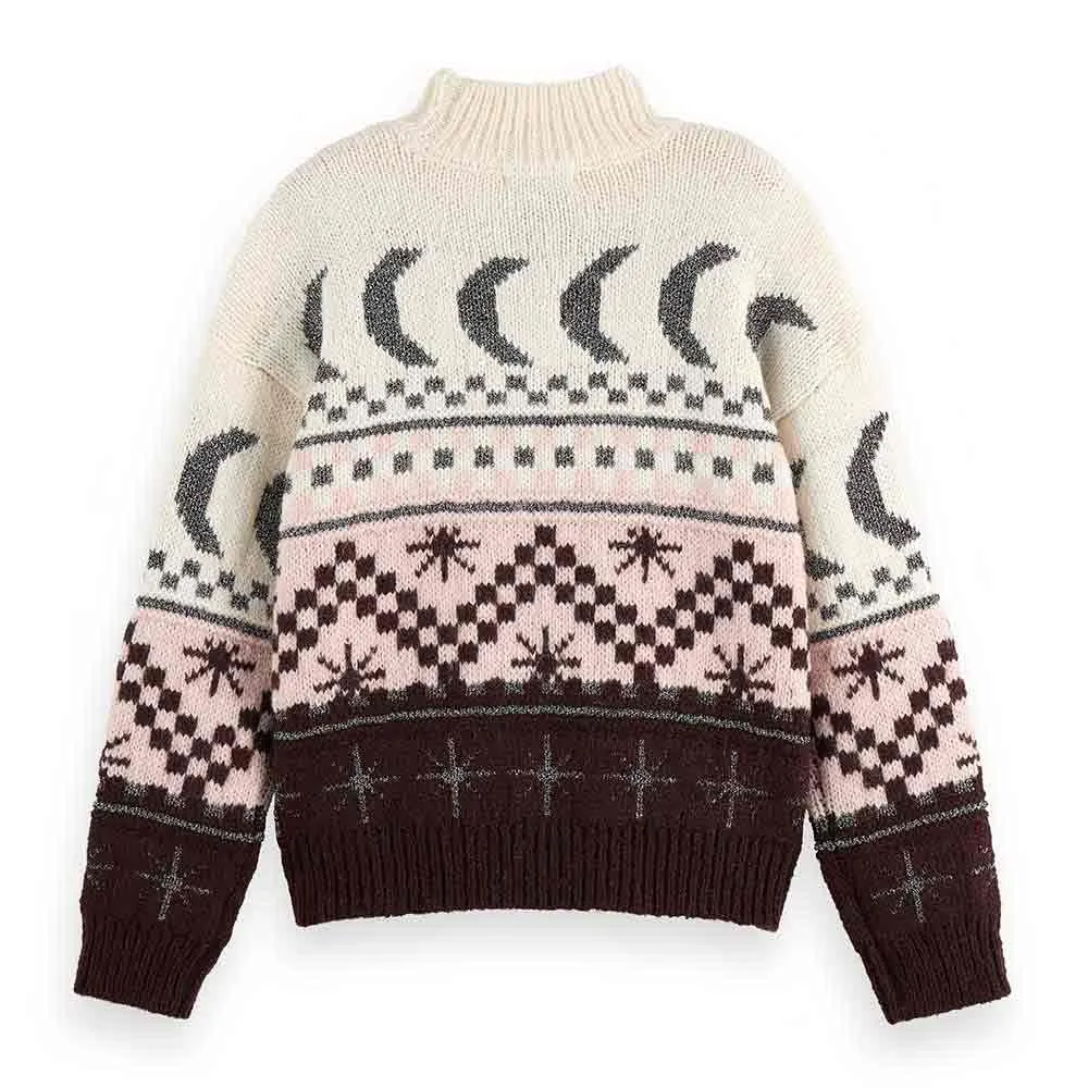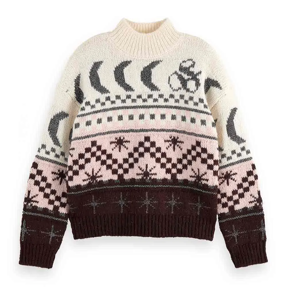 Откройте для себя идеальное сочетание традиционного дизайна и современного гламура с женским свитером Fair Isle цвета металлик SCOTCH & SODA. Это изысканное изделие по-новому определяет традиционный трикотаж, придавая неподвластному времени узору чарующее металлическое мерцание, которое улавливает свет при каждом движении. Разработанный для современной женщины, которая ценит как исключительный комфорт, так и выдающийся стиль, этот свитер является настоящим воплощением творчества уроженцев Амстердама и непринужденной изысканности, что делает его незаменимым и универсальным дополнением к вашему гардеробу.