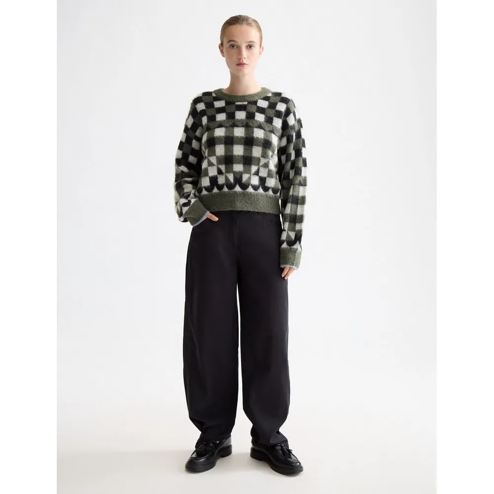 Главной особенностью этого изысканного изделия является очаровательный жаккардовый узор по всему телу. Искусно вплетенный в ткань, замысловатый узор добавляет нотку визуальной поэзии и фактуры, отличая его от обычного трикотажа. Самой характерной чертой свитера является его удивительно пушистая и плюшевая текстура, тактильное наслаждение достигается благодаря роскошной смеси, содержащей мягкий мохер. Это создает красивый, едва уловимый эффект ореола, который улавливает свет и невероятно нежно ощущается на коже. Модель классического и универсального силуэта с удобным круглым вырезом горловины и отделкой в мелкую рубчатую полоску на манжетах и подоле обеспечивает идеальную посадку и сохраняет форму.