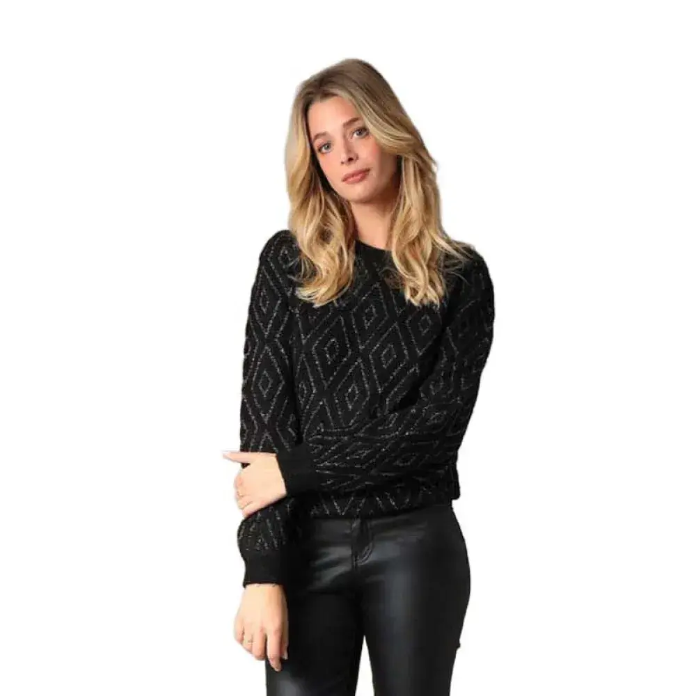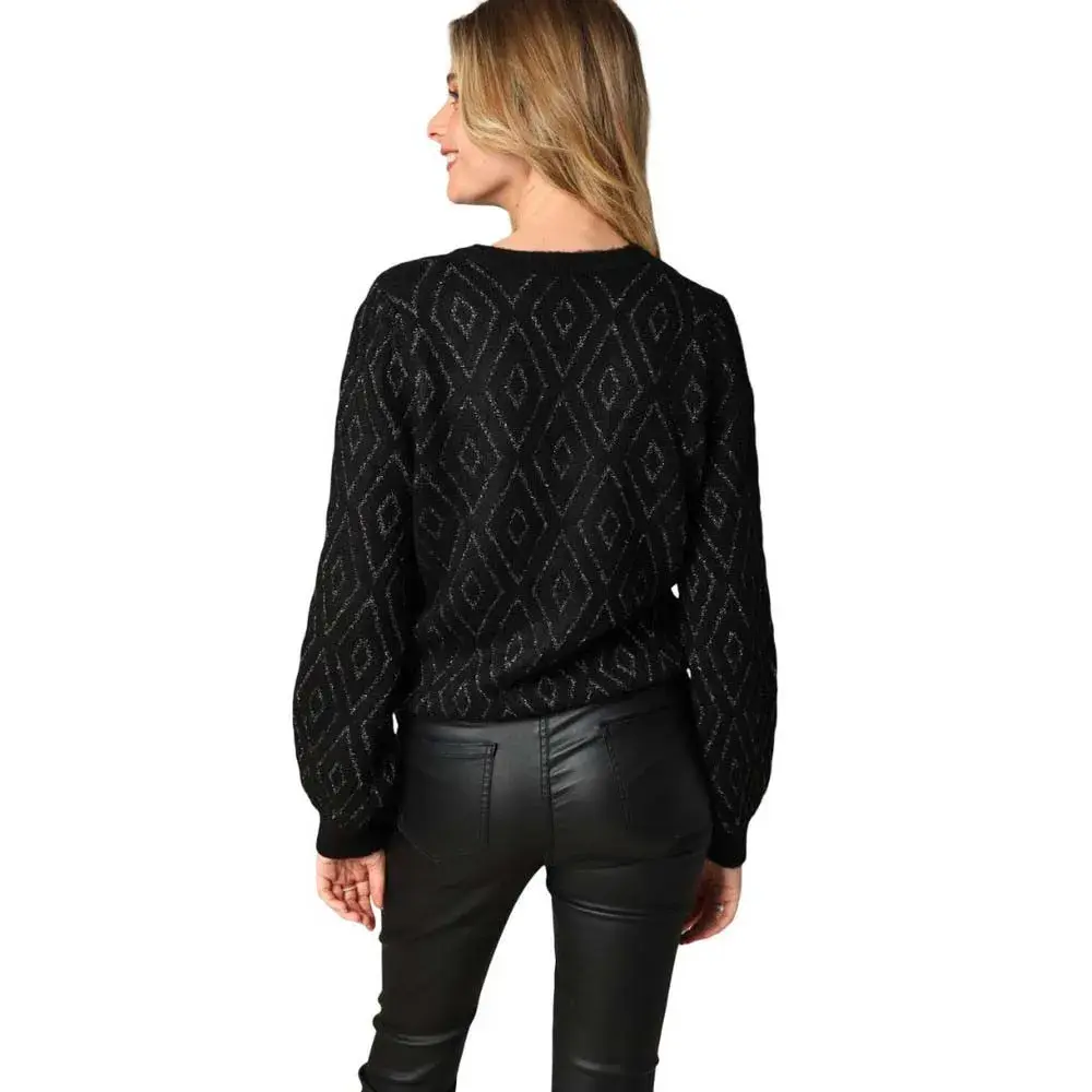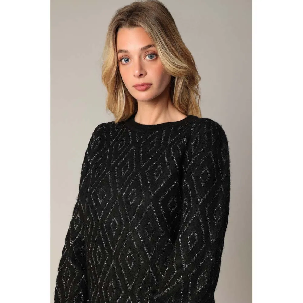 Свитер MAINA не просто согревает, он улавливает свет, как шикарный диско-шар. Его ромбовидный узор, дополненный металлической нитью, добавит нотку блеска в ваши дни (и вечера). Благодаря мягкому трикотажу и неподвластному времени округлому вырезу, это идеальный союзник для стильной зимы. Надевайте его всякий раз, когда хотите без особых усилий сочетать комфорт и блеск. Нет сомнений, что это произведение привлечет внимание ... даже в самый лютый мороз.