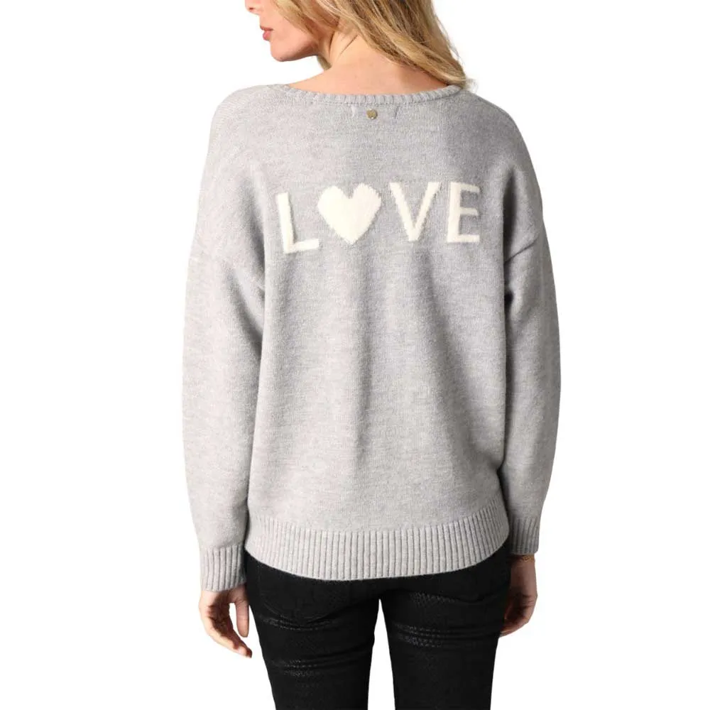 Свитер Nadissa очаровывает своим лаконичным дизайном спереди и выразительным рисунком сзади. Изготовленный из сверхмягкой смеси, обогащенной кашемиром, он окутывает силуэт легким и приятным теплом. Прямой крой, длинные рукава и овальный вырез делают его незаменимым предметом повседневной носки. Но по-настоящему сияет спинка: жаккардовый узор "love" с сердечком в виде буквы "О" придает этому изделию нежный и смелый оттенок. Сочетайте его со струящейся юбкой, джинсами или модельными брюками, чтобы излучать позитивную атмосферу в течение всего дня.